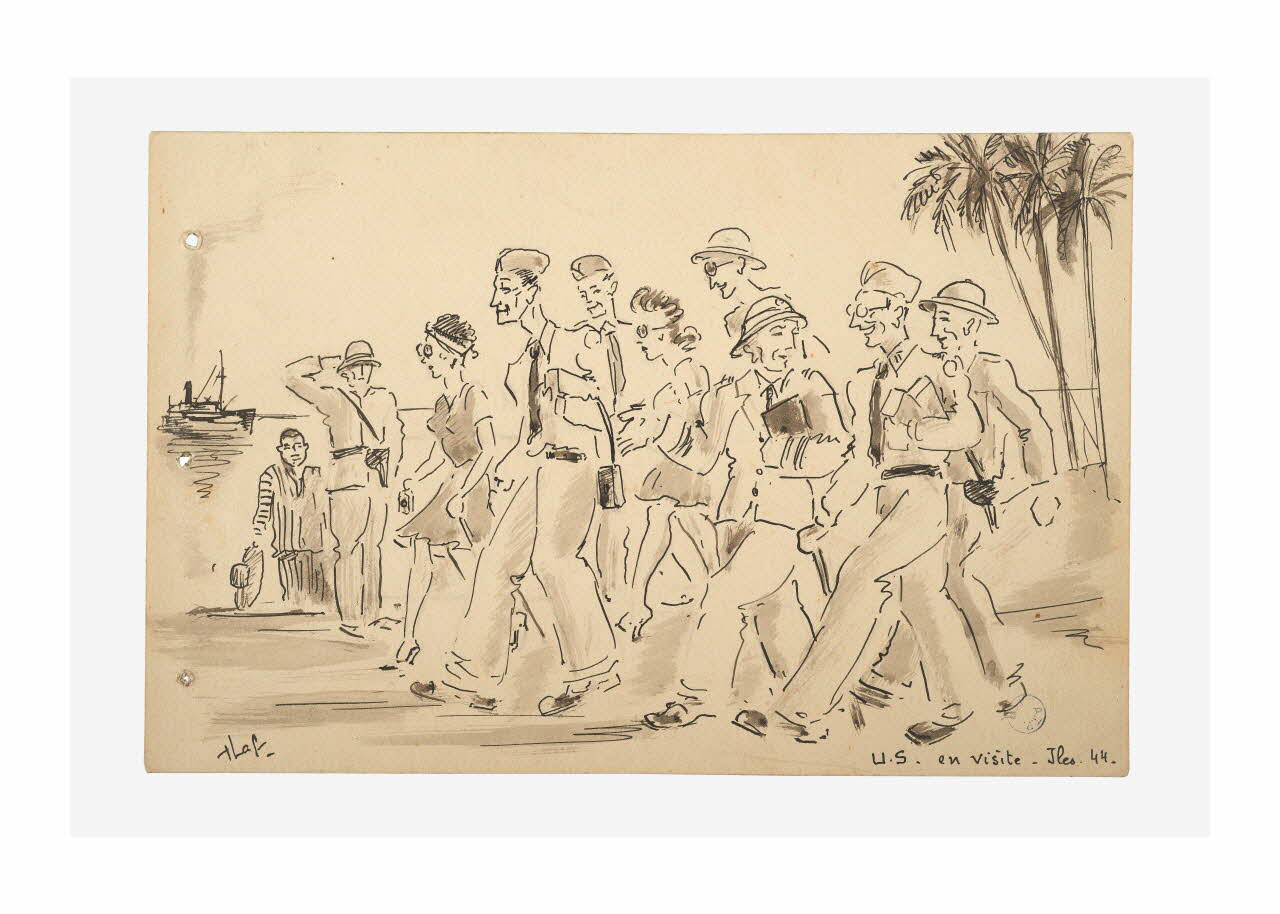 partie d'un ensemble de dessins, U. S. en visite. Iles.