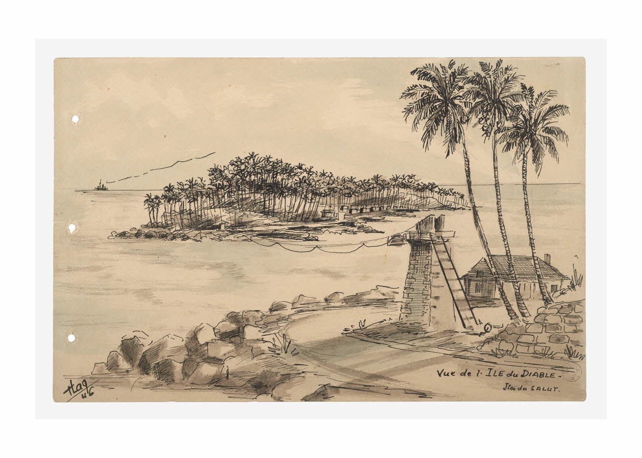 partie d'un ensemble de dessins, Vue de l'Ile du Diable. Iles du SALUT.
