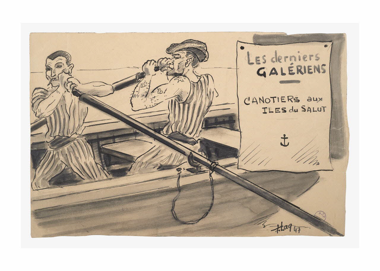 partie d'un ensemble de dessins, Les derniers GALERIENS CANOTIERS aux ILES du SALUT