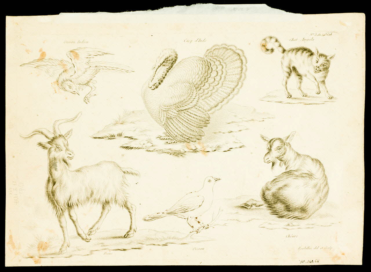 - Représentation animalière : oiseau, dindon, chèvre, bouc, chat