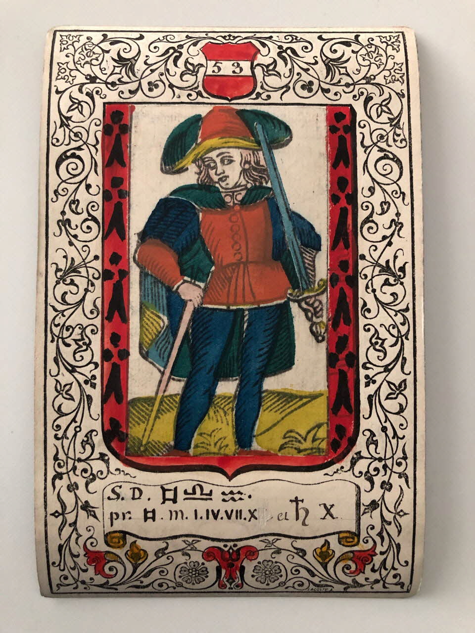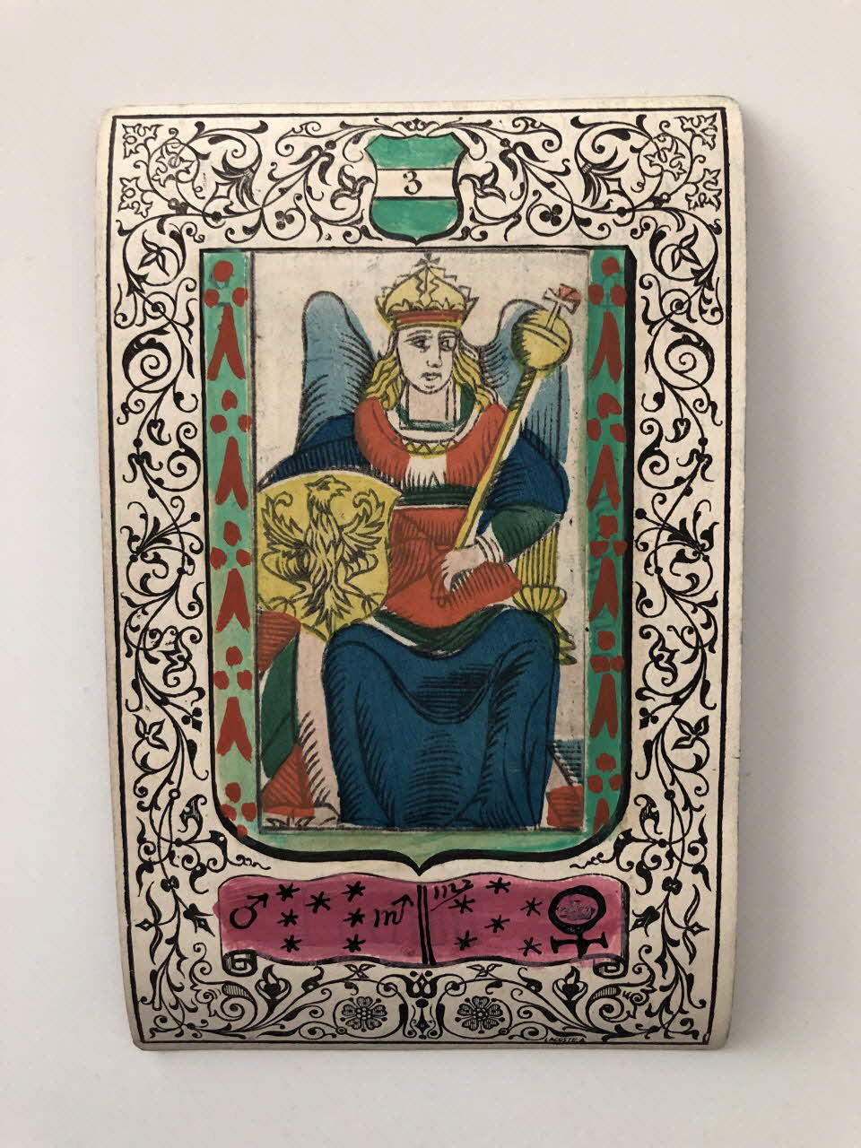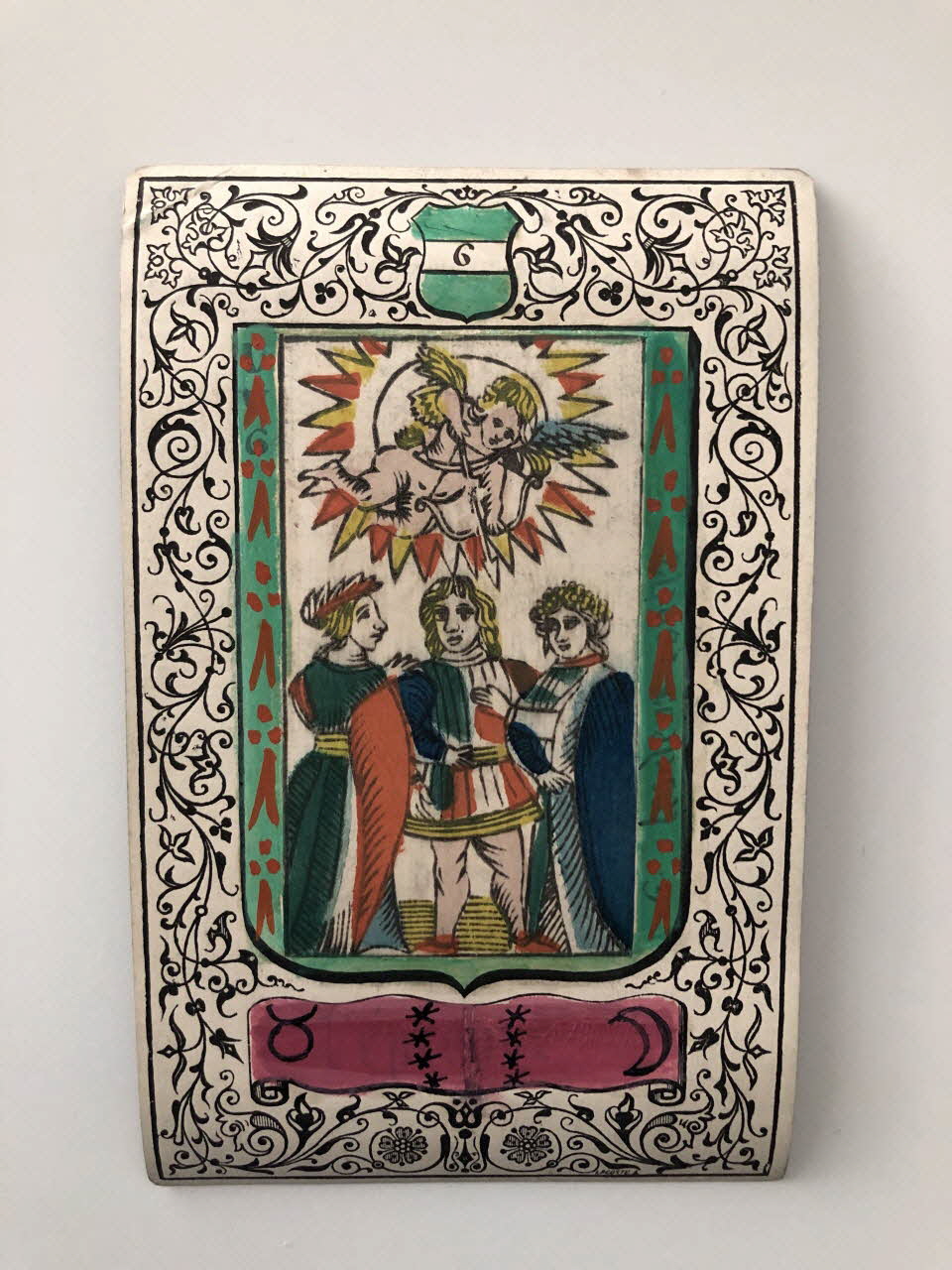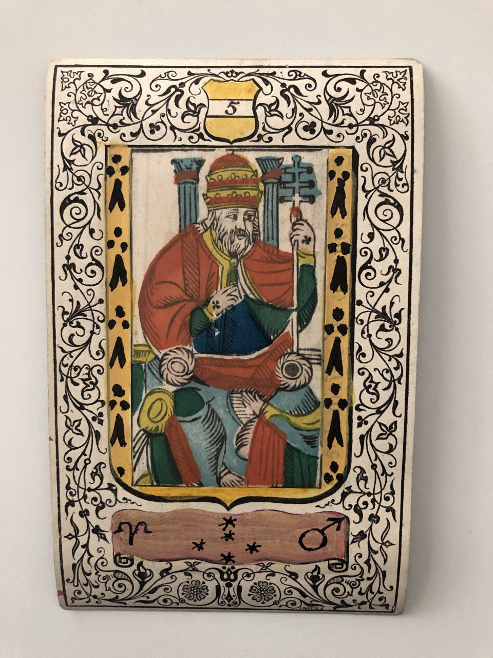 Lieu : Paris, Ile-de-France, FranceUtilisateurs :Il s'agit probablement du jeu personnel du Mage Edmond (Jules Charles Ernest Billaudot, 1829-1881), dont Marcel Belline a hérité les archives. Belline a utilisé les tarots d'Edmond et s'en est inspiré pour l'une des versions de son Oracle. Il a également donné au musée des "Notes abrégées" d'Edmond sur la cartomancie et un "Manuel de cartomancie à l'usage des gens du monde" provenant également du mage.