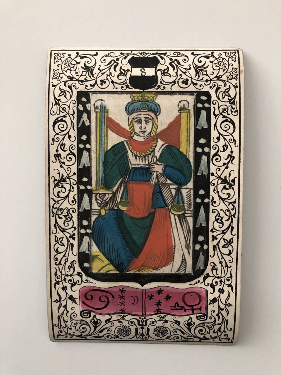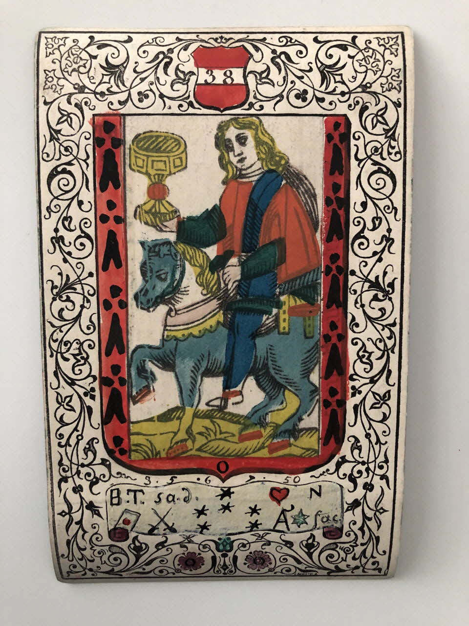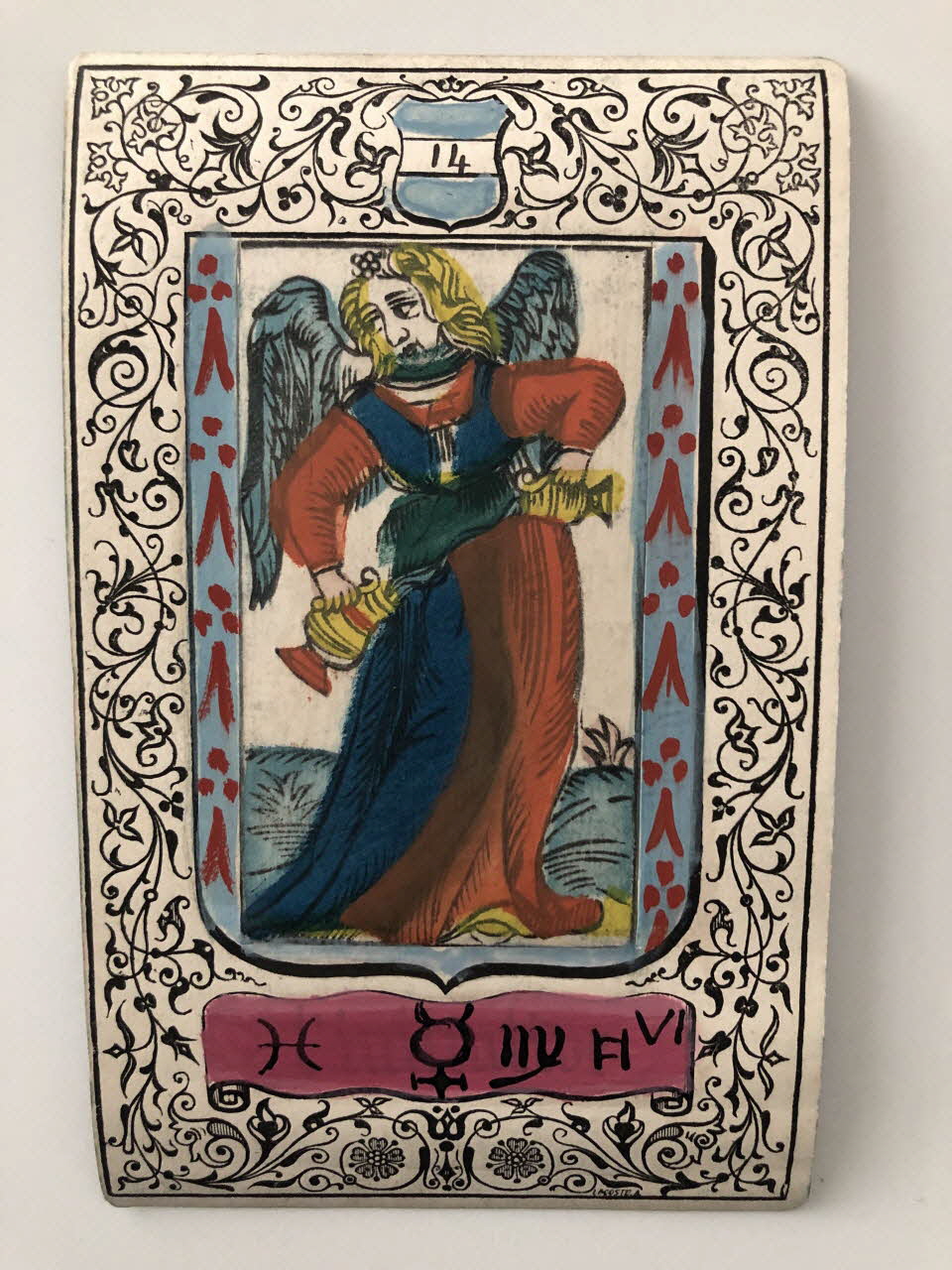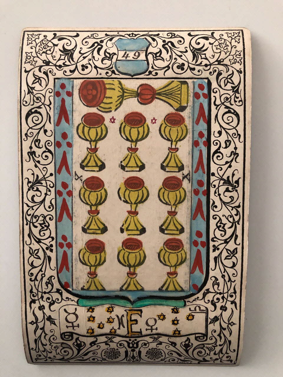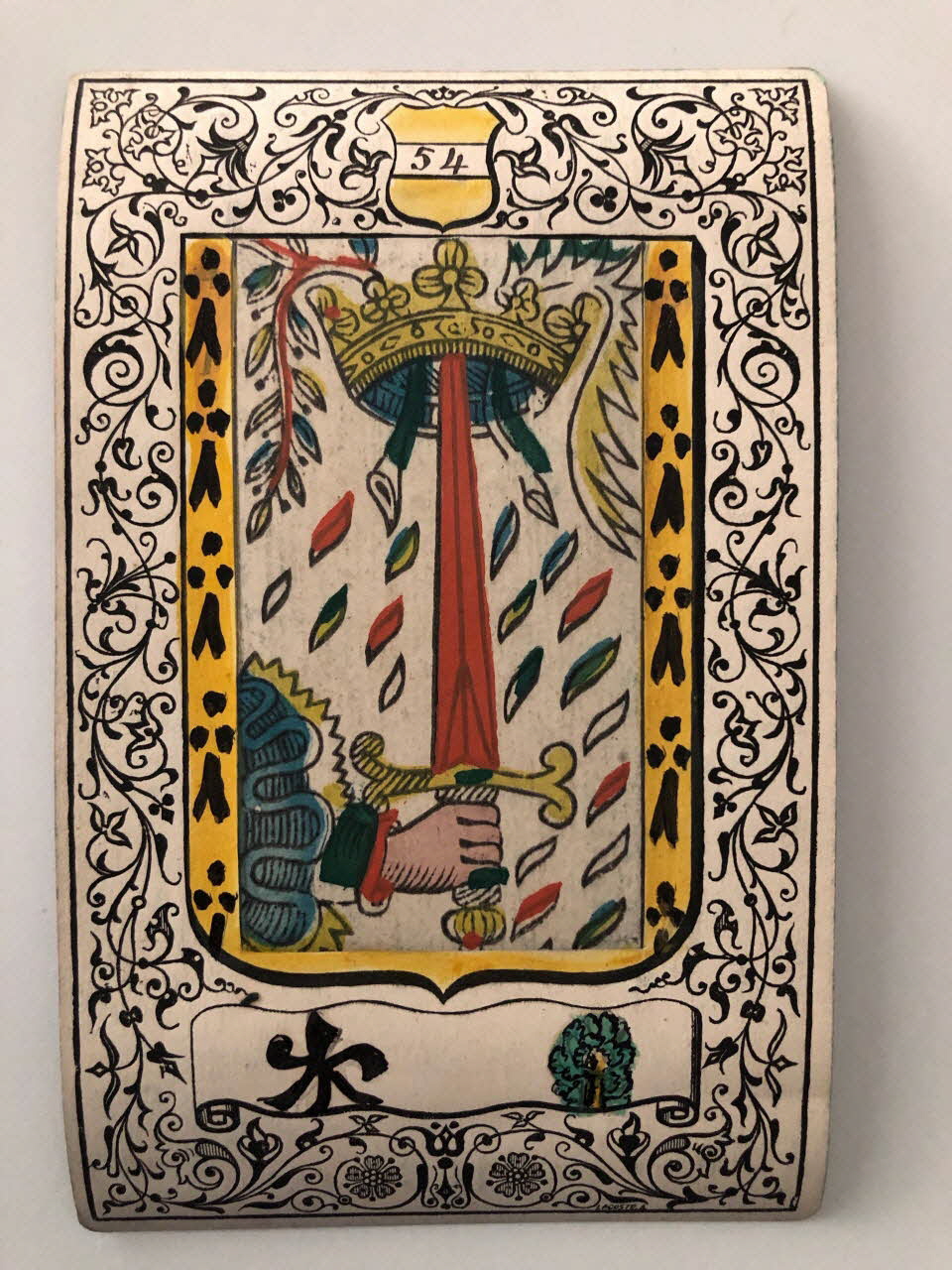 Lieu : Paris, Ile-de-France, FranceUtilisateurs :Il s'agit probablement du jeu personnel du Mage Edmond (Jules Charles Ernest Billaudot, 1829-1881), dont Marcel Belline a hérité les archives. Belline a utilisé les tarots d'Edmond et s'en est inspiré pour l'une des versions de son Oracle. Il a également donné au musée des "Notes abrégées" d'Edmond sur la cartomancie et un "Manuel de cartomancie à l'usage des gens du monde" provenant également du mage.