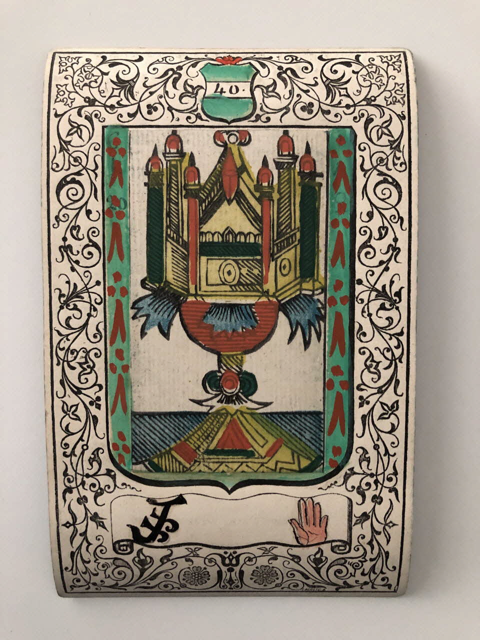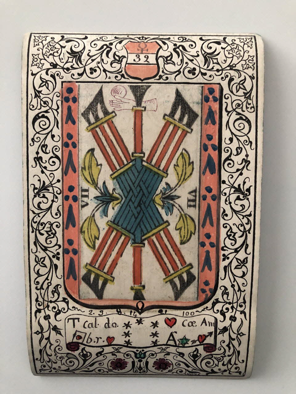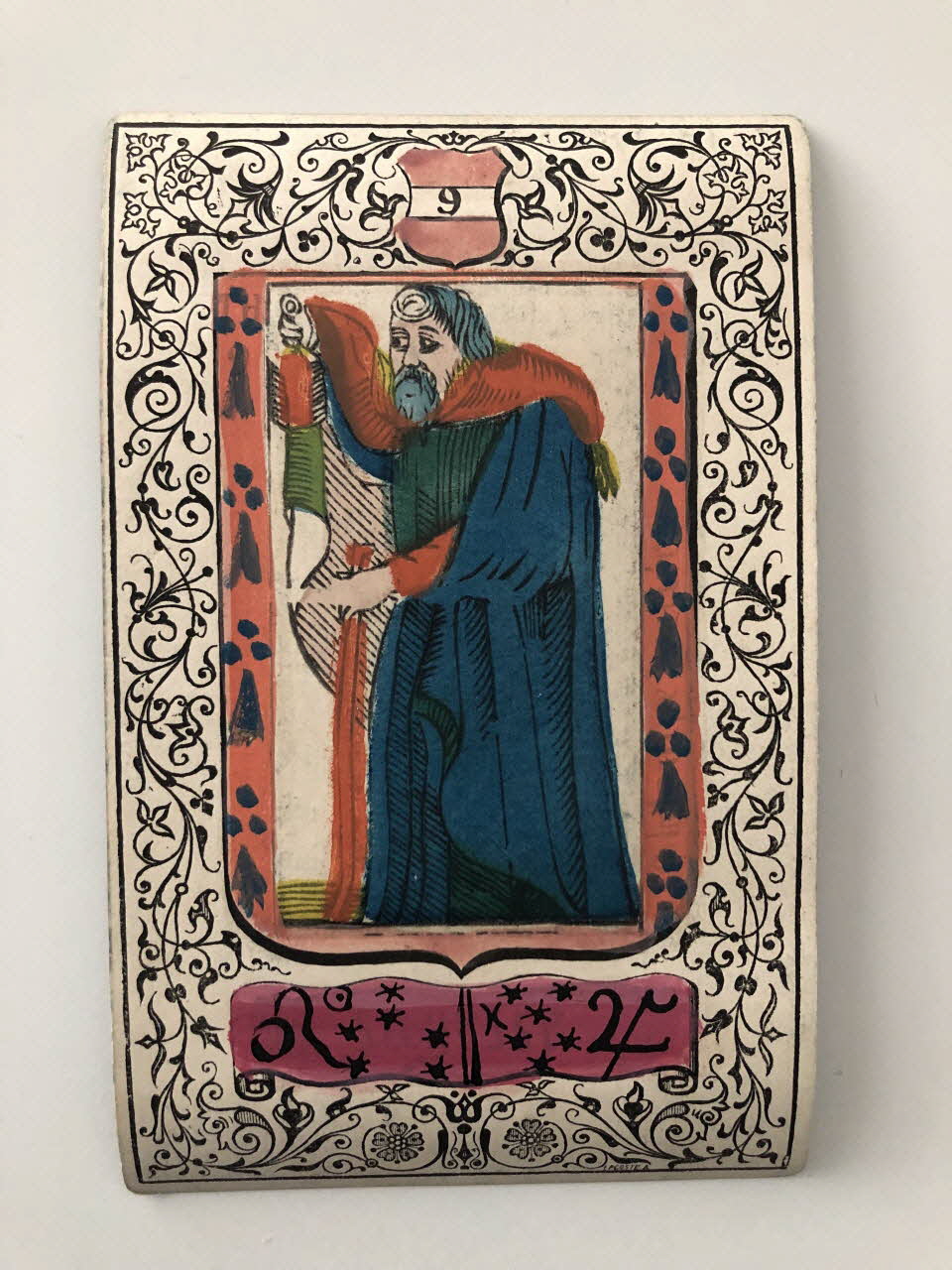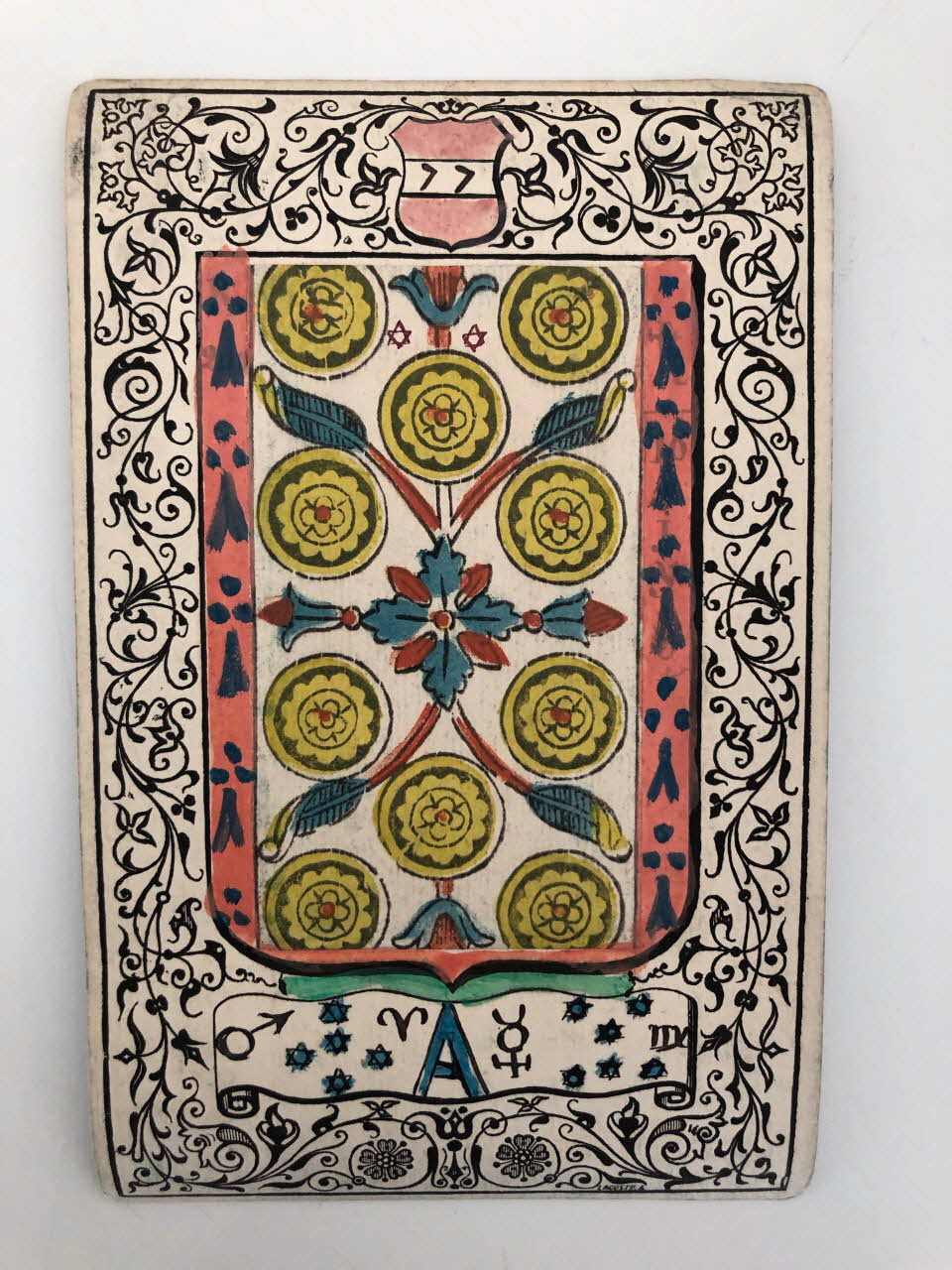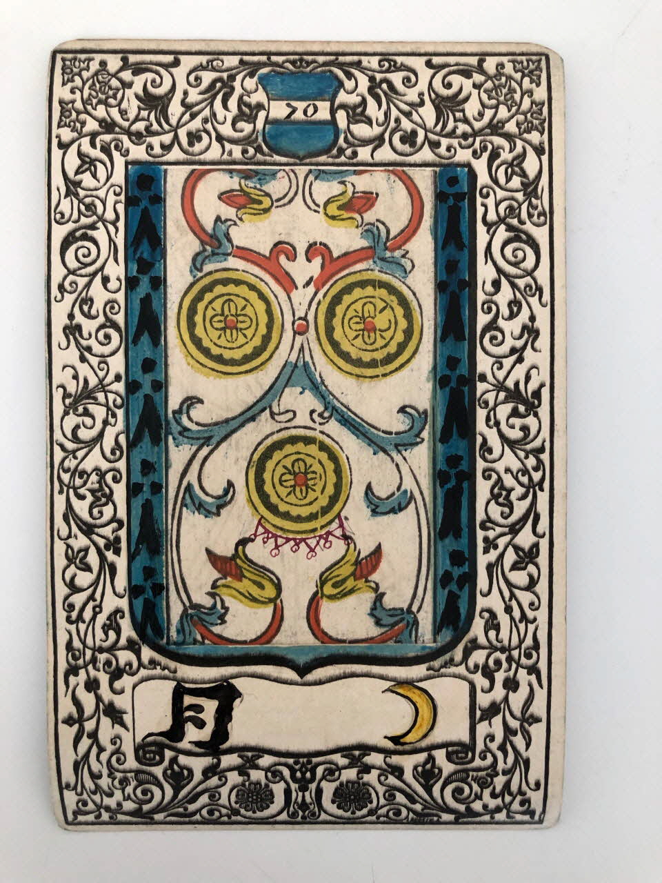 Lieu : Paris, Ile-de-France, FranceUtilisateurs :Il s'agit probablement du jeu personnel du Mage Edmond (Jules Charles Ernest Billaudot, 1829-1881), dont Marcel Belline a hérité les archives. Belline a utilisé les tarots d'Edmond et s'en est inspiré pour l'une des versions de son Oracle. Il a également donné au musée des "Notes abrégées" d'Edmond sur la cartomancie et un "Manuel de cartomancie à l'usage des gens du monde" provenant également du mage.