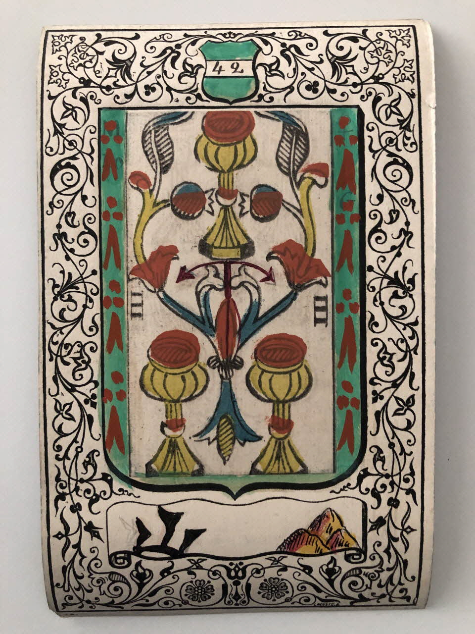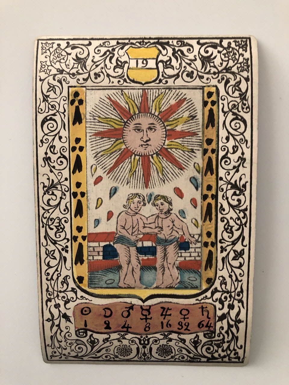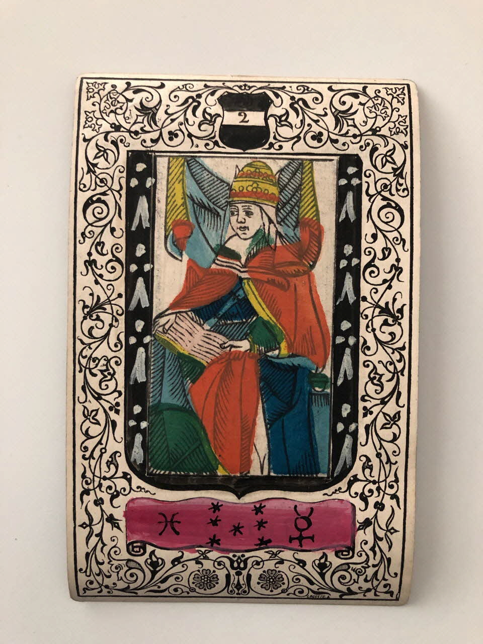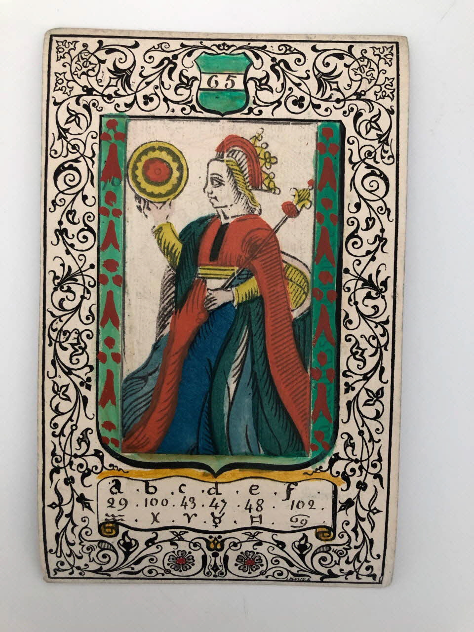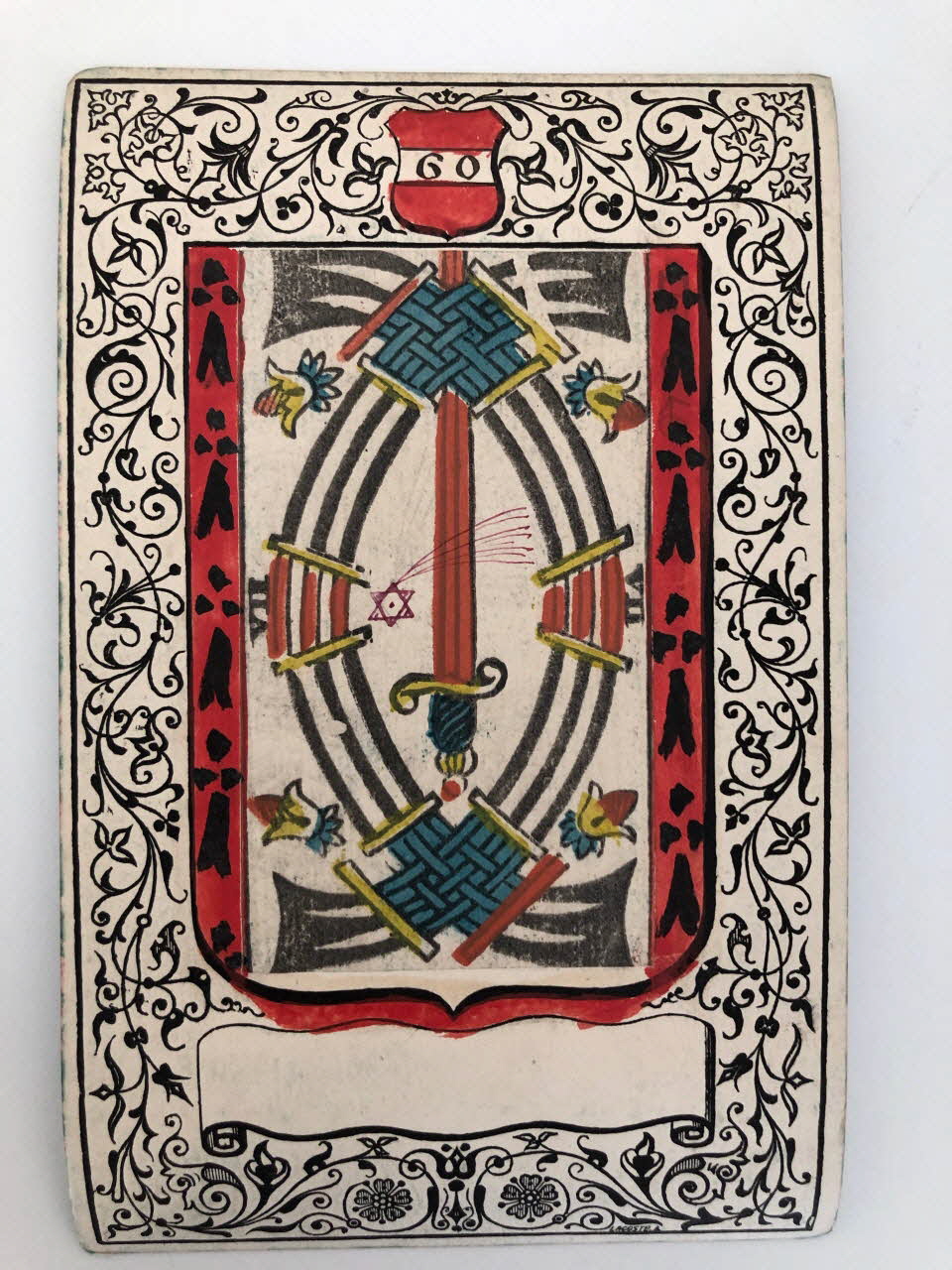 Lieu : Paris, Ile-de-France, FranceUtilisateurs :Il s'agit probablement du jeu personnel du Mage Edmond (Jules Charles Ernest Billaudot, 1829-1881), dont Marcel Belline a hérité les archives. Belline a utilisé les tarots d'Edmond et s'en est inspiré pour l'une des versions de son Oracle. Il a également donné au musée des "Notes abrégées" d'Edmond sur la cartomancie et un "Manuel de cartomancie à l'usage des gens du monde" provenant également du mage.