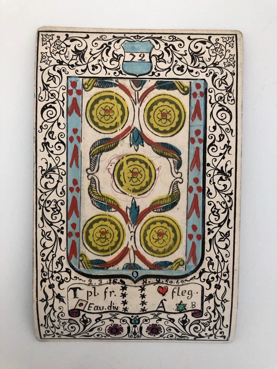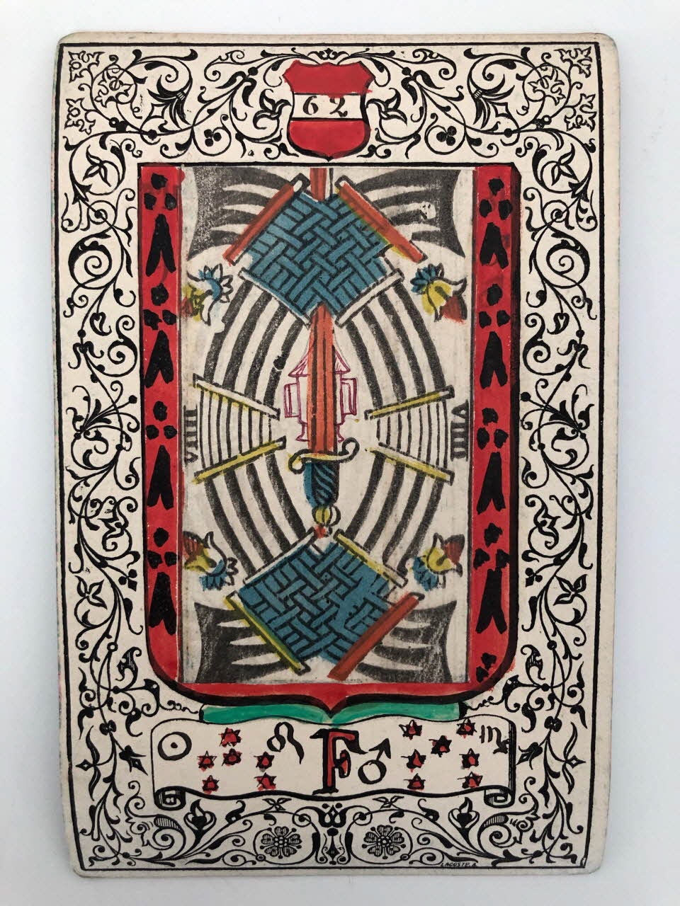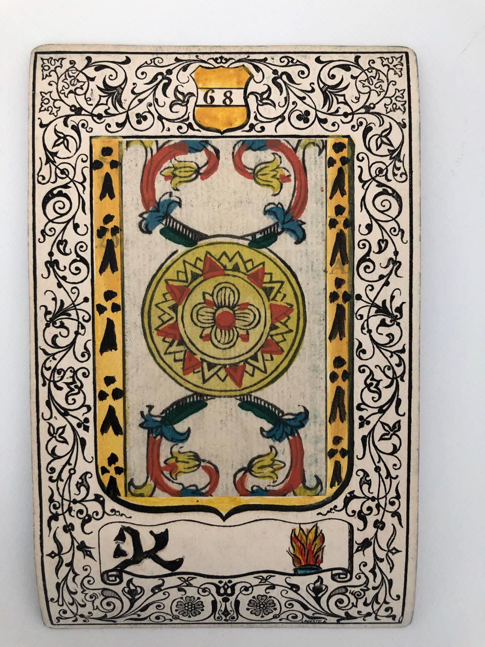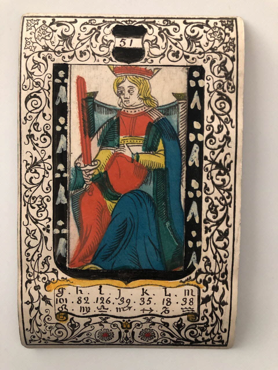 Lieu : Paris, Ile-de-France, FranceUtilisateurs :Il s'agit probablement du jeu personnel du Mage Edmond (Jules Charles Ernest Billaudot, 1829-1881), dont Marcel Belline a hérité les archives. Belline a utilisé les tarots d'Edmond et s'en est inspiré pour l'une des versions de son Oracle. Il a également donné au musée des "Notes abrégées" d'Edmond sur la cartomancie et un "Manuel de cartomancie à l'usage des gens du monde" provenant également du mage.