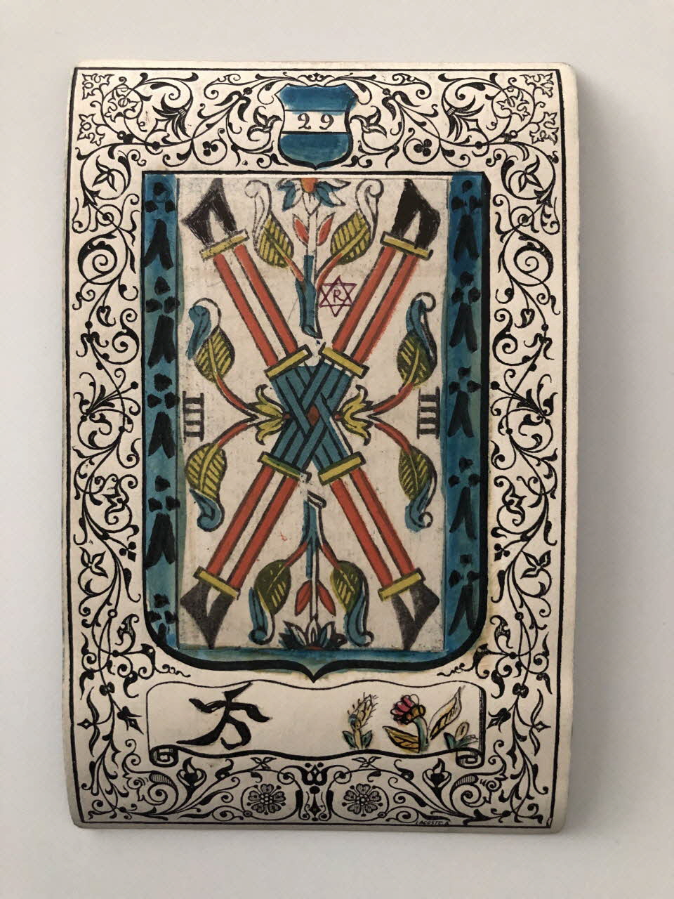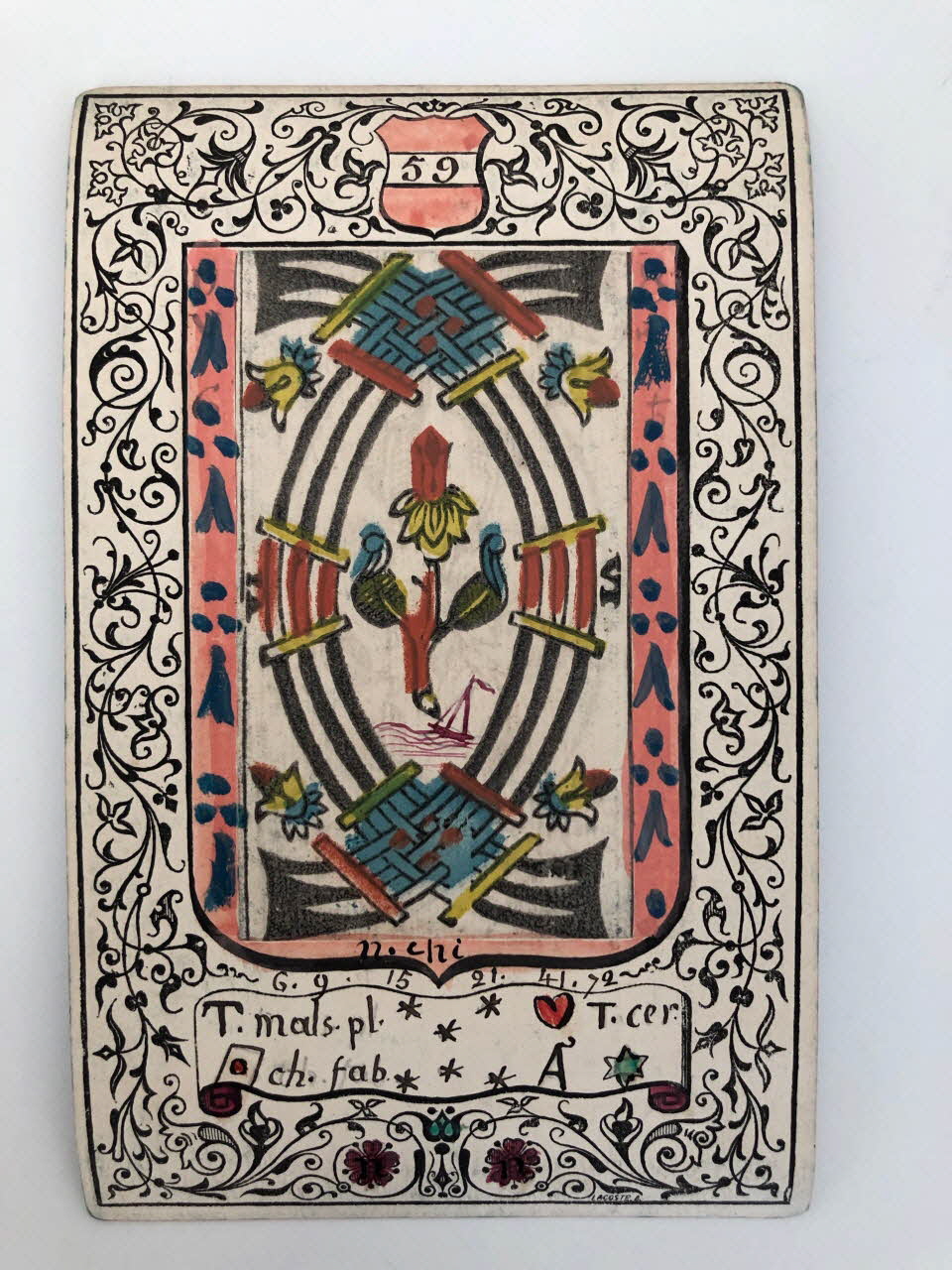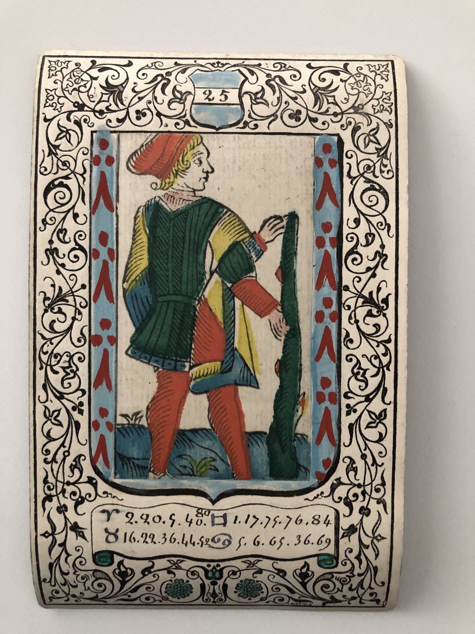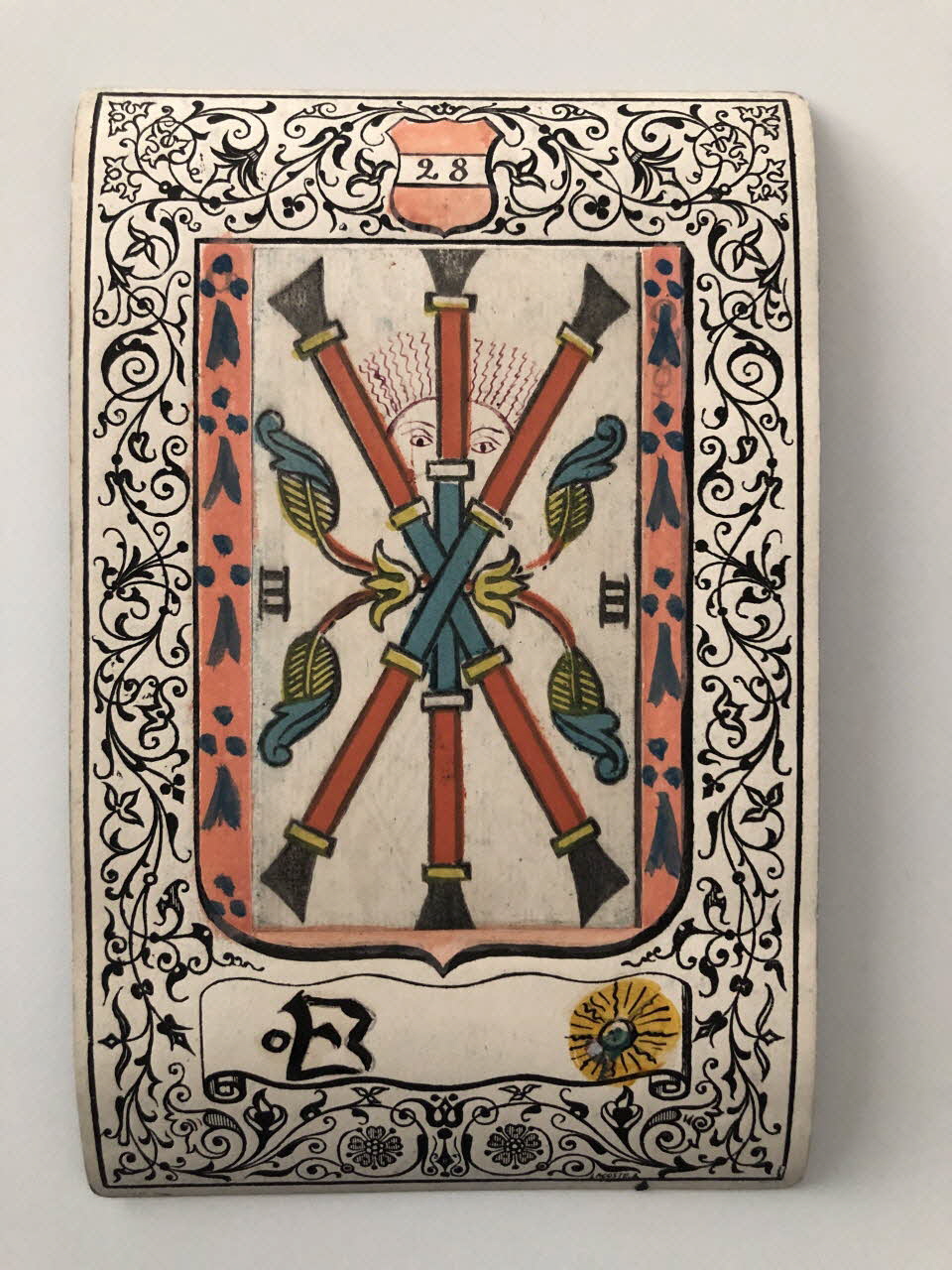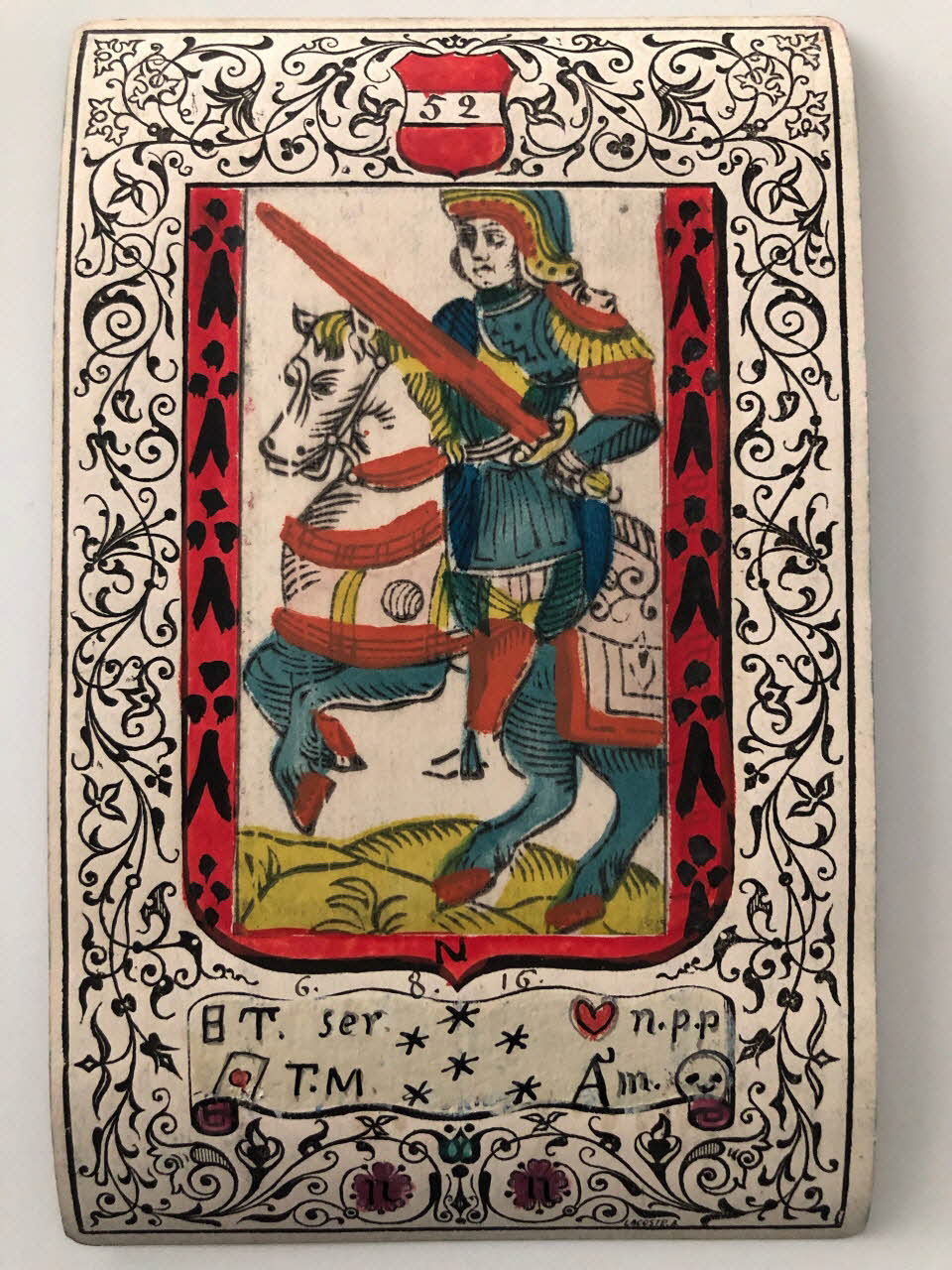 Lieu : Paris, Ile-de-France, FranceUtilisateurs :Il s'agit probablement du jeu personnel du Mage Edmond (Jules Charles Ernest Billaudot, 1829-1881), dont Marcel Belline a hérité les archives. Belline a utilisé les tarots d'Edmond et s'en est inspiré pour l'une des versions de son Oracle. Il a également donné au musée des "Notes abrégées" d'Edmond sur la cartomancie et un "Manuel de cartomancie à l'usage des gens du monde" provenant également du mage.