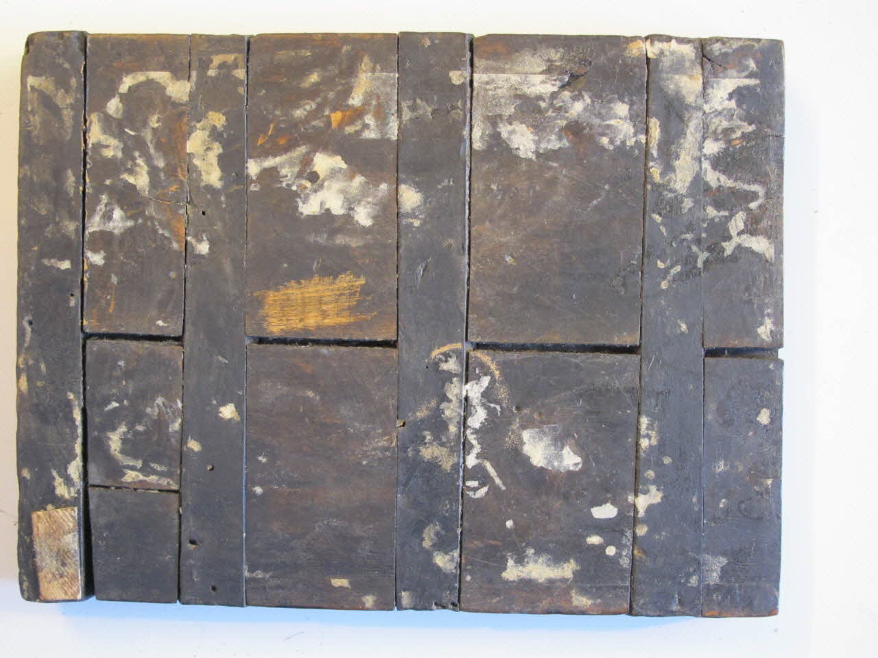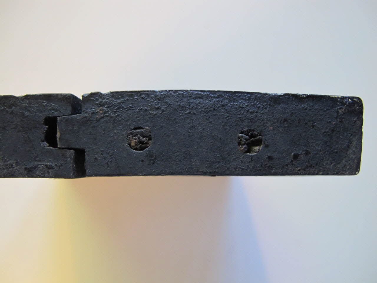 bois de feuillu dense homogène de fil à pores diffus fibre verticales (buis) fait de 2 éléments principaux assemblés par rainures et languettes complété par 2 emboîtures (buis ou poirier?) fixées par 4 chevilles en buis (emboîture sup manquante)Décor