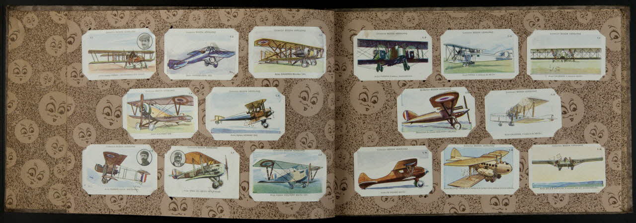 Album de 56 images comportant 8 pages. Ces images montrent des thèmes liés à l'aéronautique et à l'aviation. L'album est complet.Décor