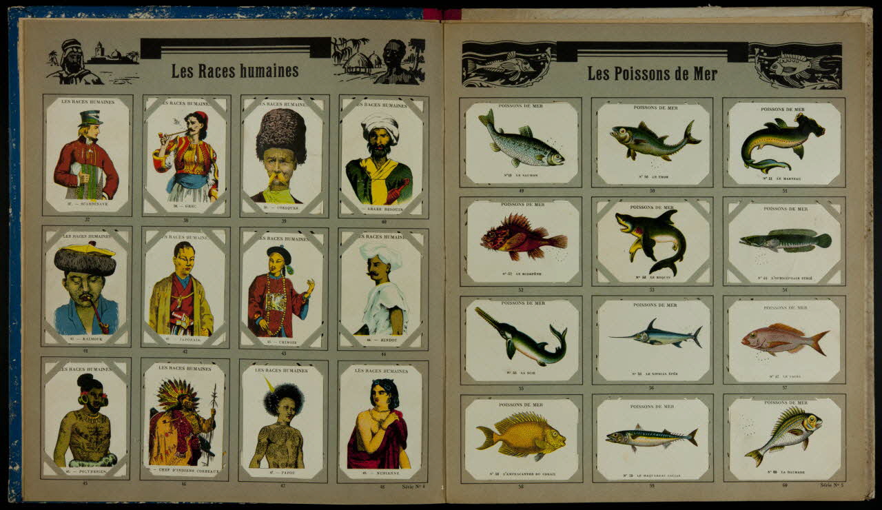 Lieu : FranceDate : 20e siècleA partir des années 1880 la conception extensive de la série (celle des cartes-réclame) va croiser la logique de la collection. Dans un contexte socio-économique de développement et de démocratisation de la consommation, de nouveaux types de produits et de nouvelles formes de commerces entreprennent de fidéliser leur clientèle par un procédé comparable à celui du feuilleton utilisé par les journeaux populaires. Le statut de l'image change : auparavant marchandise, elle devient désormais un élément gratuit de l'échange marchand qui procure un attrait supplémentaire à des produits de consommation fortement standardisés. Non seulement l'image est donnée mais de plus elle est cachée, ménageant une surprise à l'ouverture du paquet. Permis par cette évolution des techniques d'impression, ces procédés proposent à un très large public des vignettes de petite taille, facilement manipulables, fonctionnant en séries closes (on connaît à l'avance le nombre d'éléments qui les composent) traitant de thèmes attractifs et présentant une réelle polychromie (alors que les images antérieures étaient coloriées en aplats).
