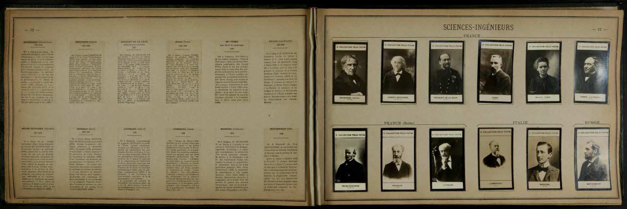 Images photo sépia de personnalités avec une biographie. Album de 39 pages, 510 images. Complet.Inscriptions