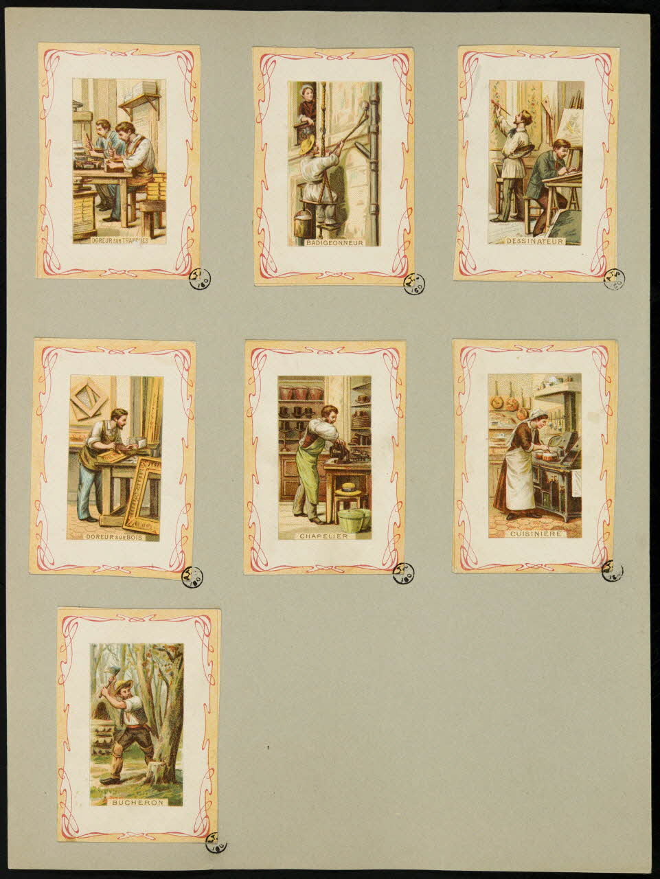 - Scène : femme : en pied, tablier, instrument de cuisine : casserole, cuillère, gaz, cuisinière