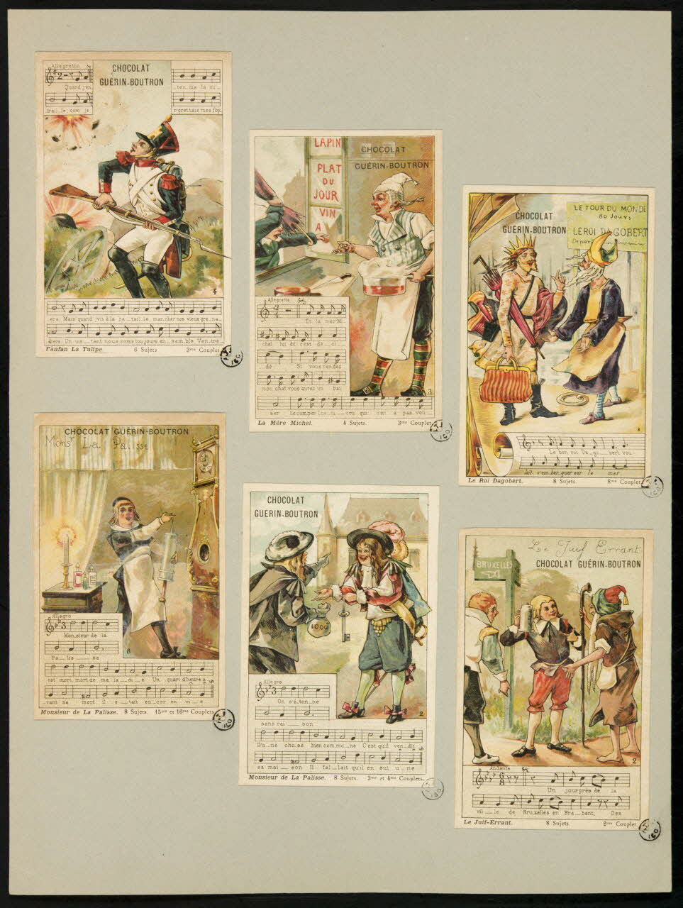- Scène : La Mère Michel, fenêtre, parapluie, boucher, casserole, couteau