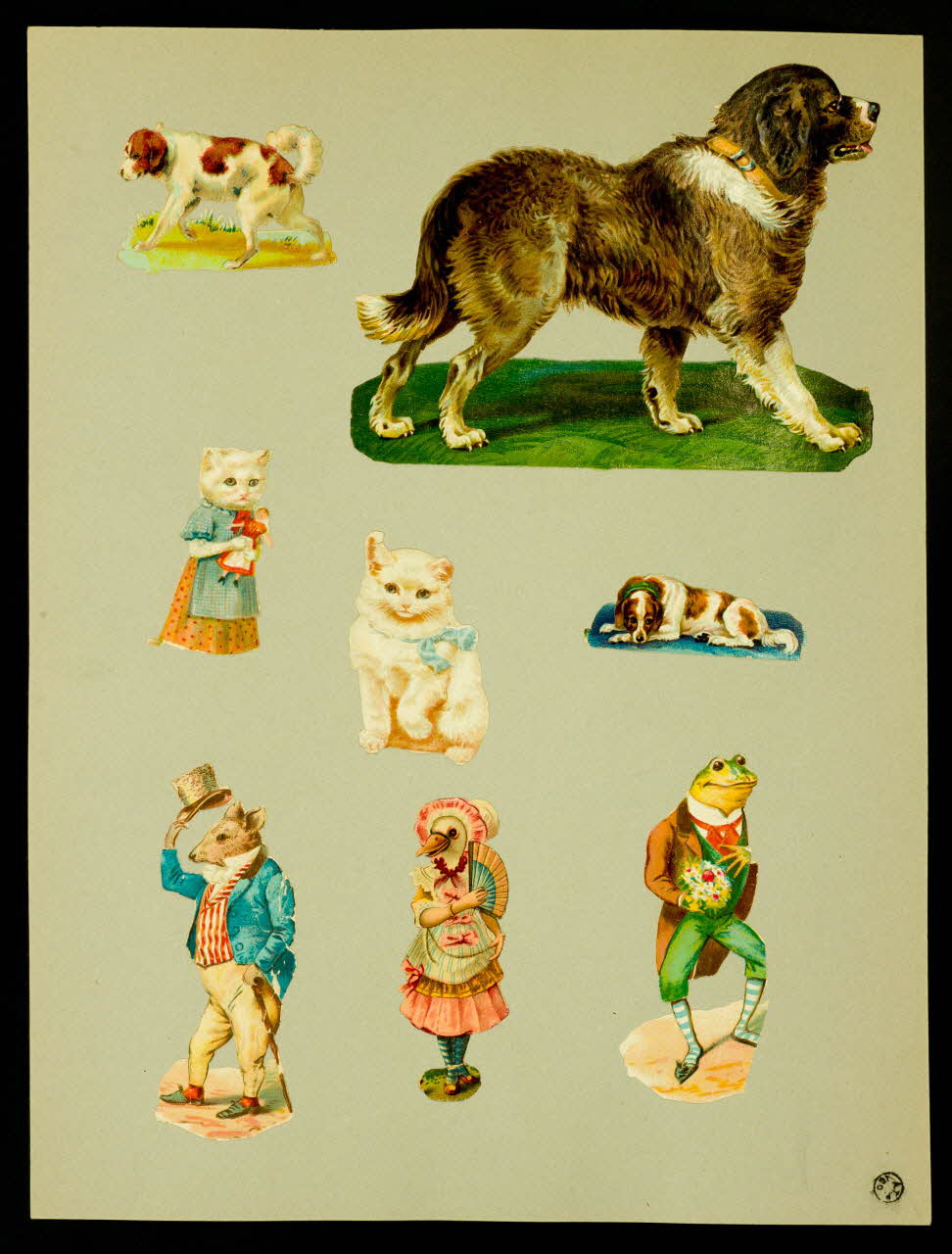 - Représentation animalière : oie, déguisement : femme : robe, bonnet, eventail