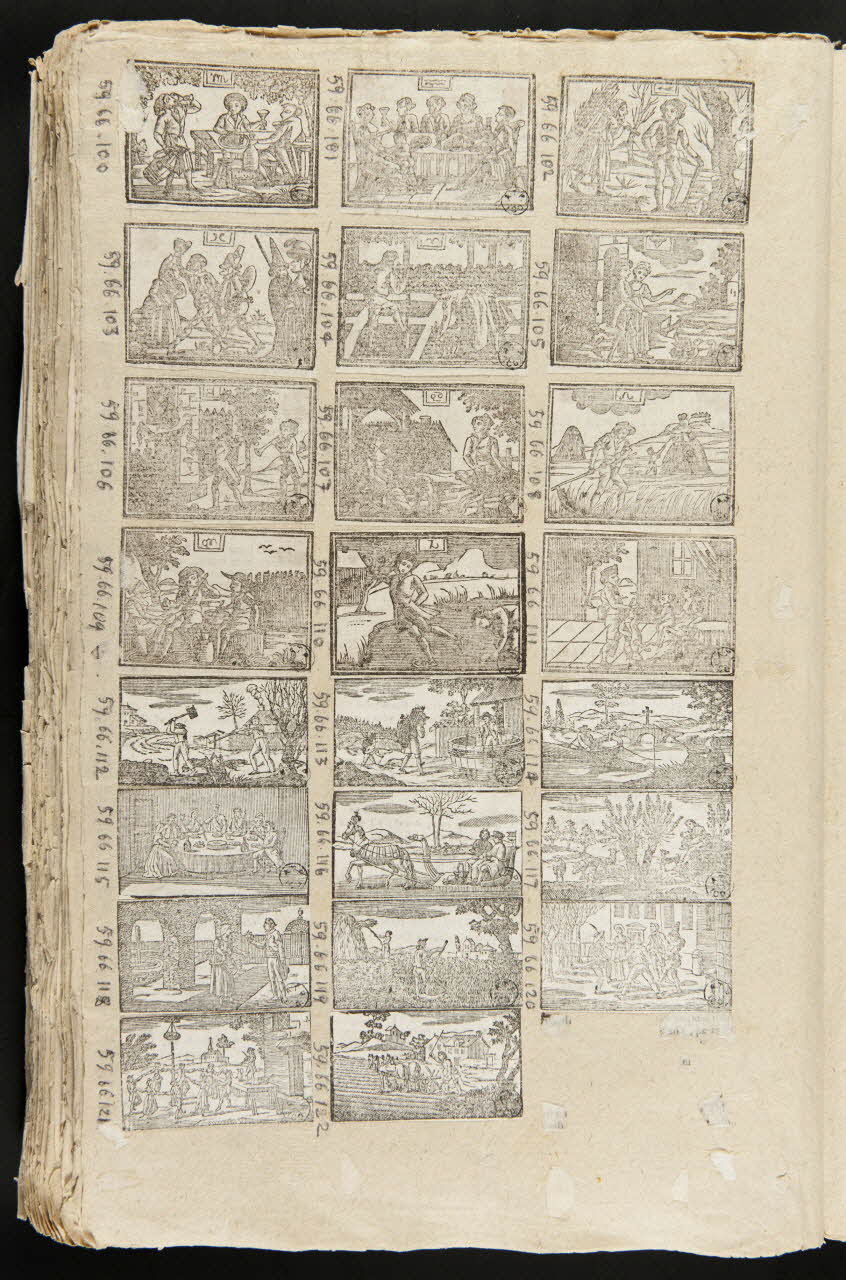 - Scène : homme : chasseur, lièvre : mort, fusil, enfant, vue d'intérieur