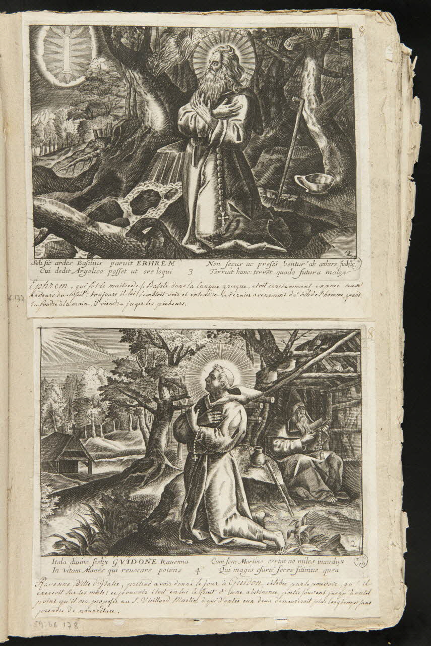 - Scène : homme, agenouillé, prière, chapelet, auréole, forêt, torrent, bougie : nuée
