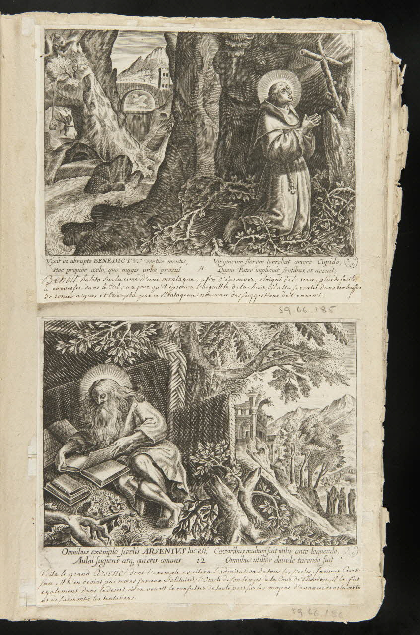 - Scène : homme, assis, barbe, auréole, livre : ouvert, lecture, forêt, ruines, prière, montagne