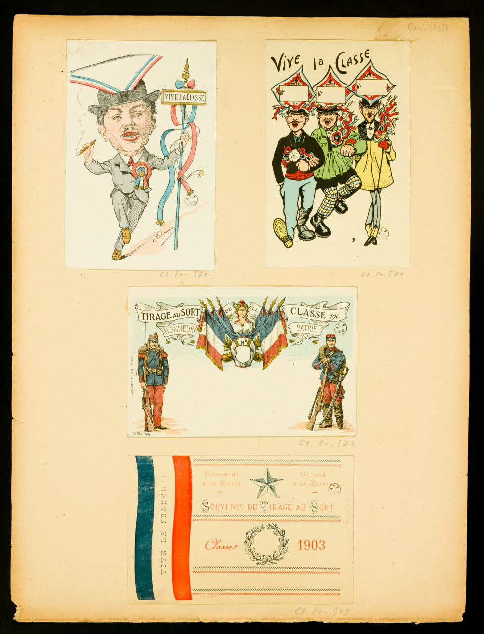 - Figure : en pied, de face, homme : conscrit, chapeau, cocarde : France, emblème