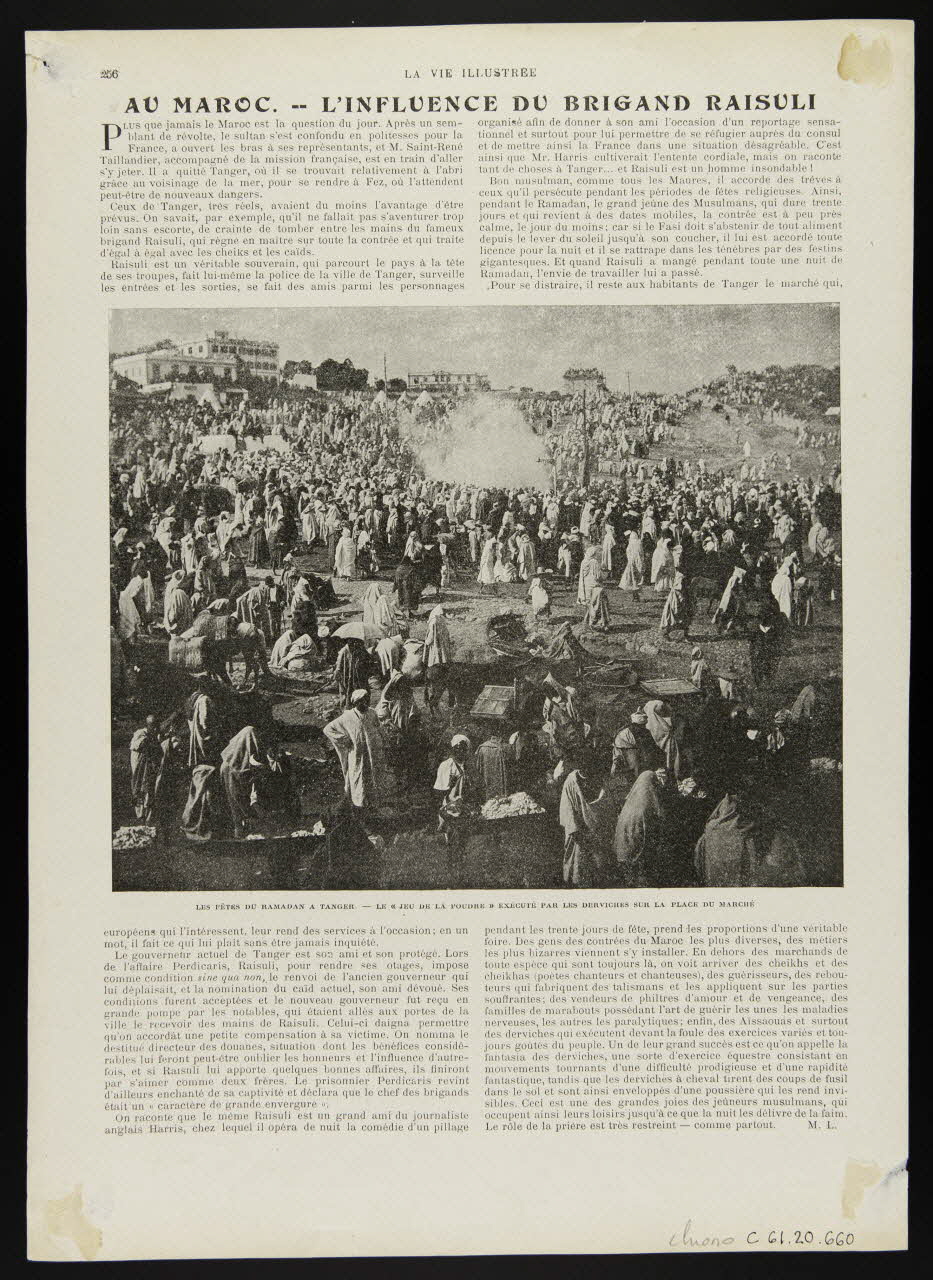 - Titre inscrit : LES FÊTES DU RAMADAN A TANGER. - LE "JEU DE LA POUDRE" EXECUTE PAR LES DERVICHES SUR LA PLACE DU MARCHE
