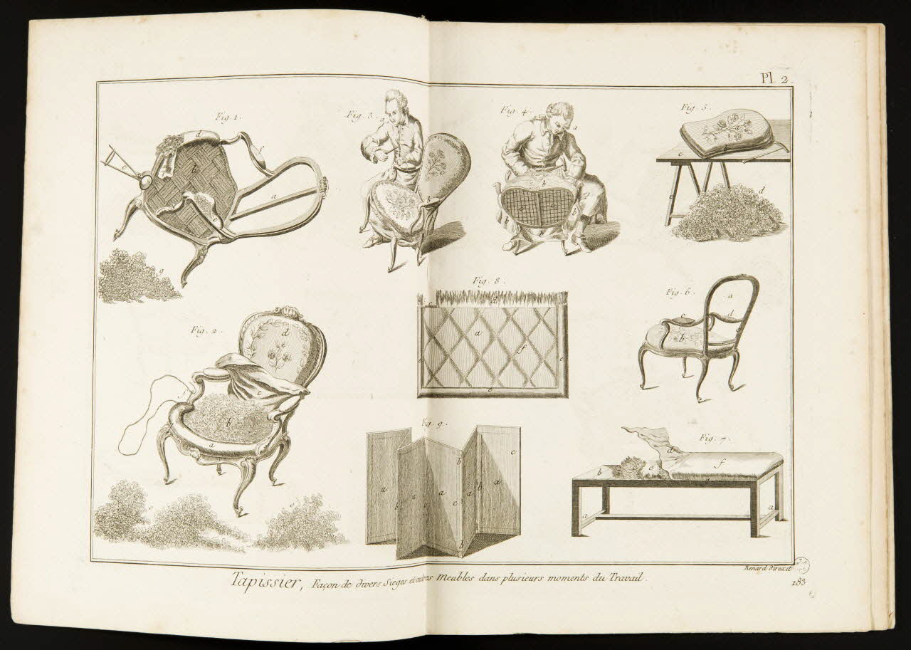 - Représentation scientifique : métier : tapissier, chaise, tissu, mobilier, outil