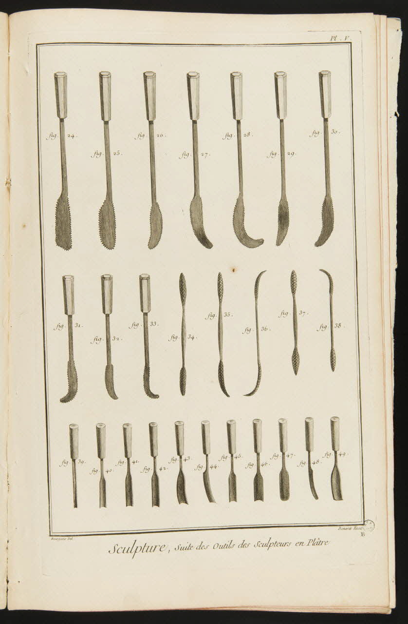 - Représentation scientifique : atelier, homme, sculpture, buste, outil, moule