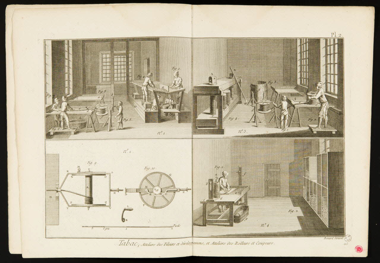 - Représentation scientifique : atelier, homme, fabrication, tabac, machine, outil