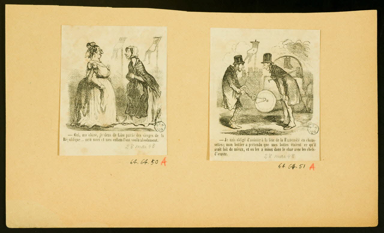 estampe, - Je suis obligé d'assister à la fête de la Fraternité en chaus- settes, mon bottier a prétendu que mes bottes étaient ce qu'il avait fait de mieux, et on les a mises dans le char avec les chefs- d'oeuvre.