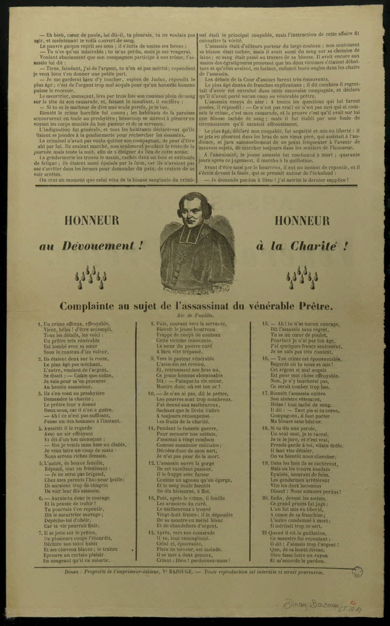 estampe, ASSASSINAT D'UN Vénérable Prêtre.