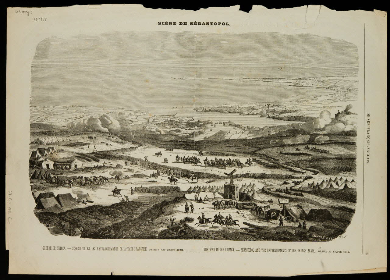 - Revers : scène : siège : Sébastopol, armée, camp, cavalier, soldat, tente, troupe, canon, fumée