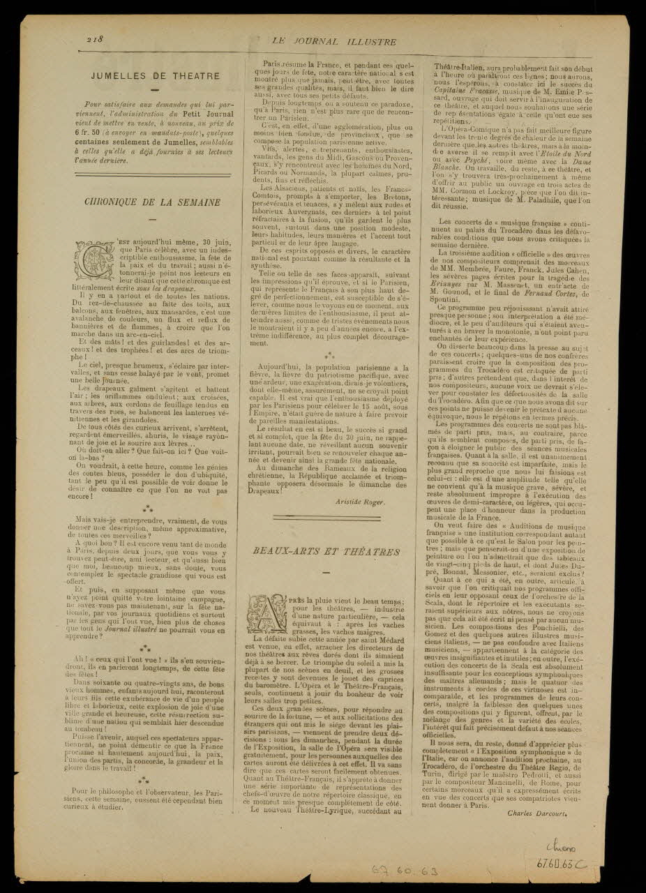 - Scène : Paris, fête, lanterne, groupe de figure, arc de triomphe, feu d'artifice