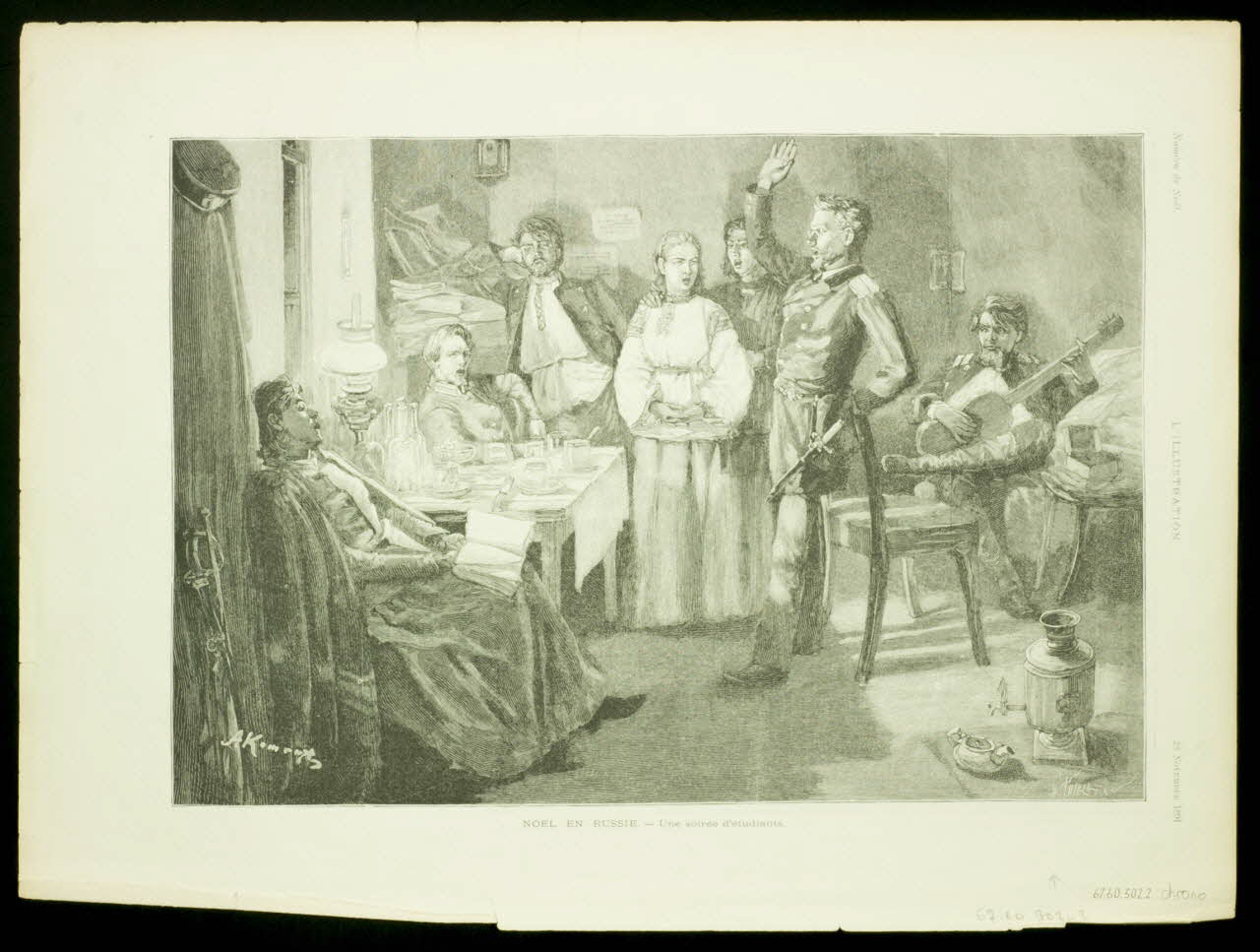 - Scène : intérieur, soir, noël, Russie, groupe : étudiant, chant