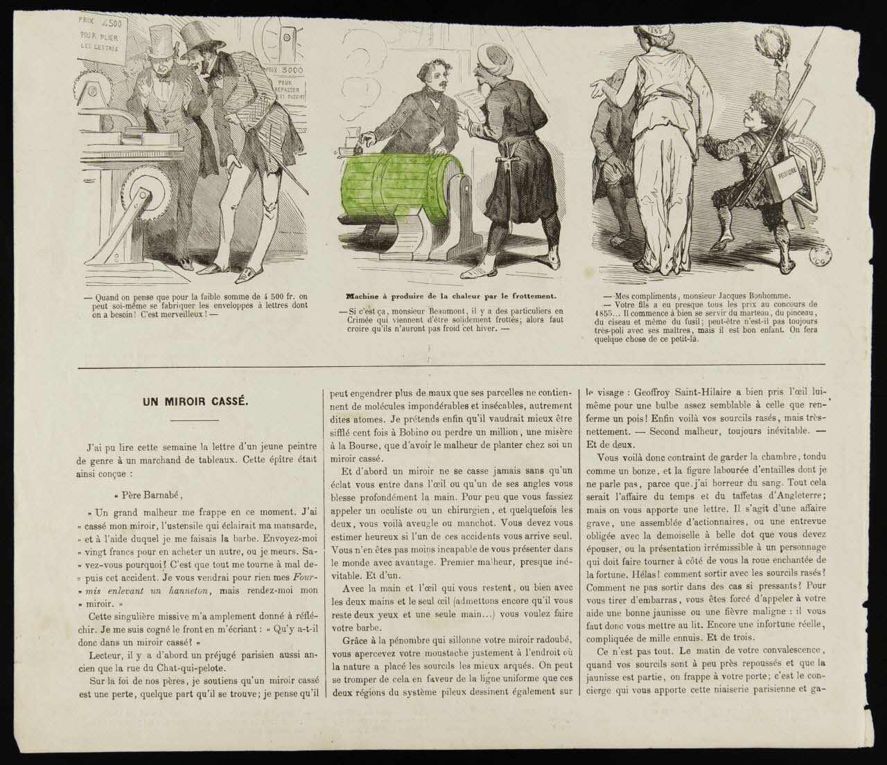 - Revers : suite de scènes : caricature, homme, femme, envol, discussion, machine : couture, voiture à attelage, art de la photographie