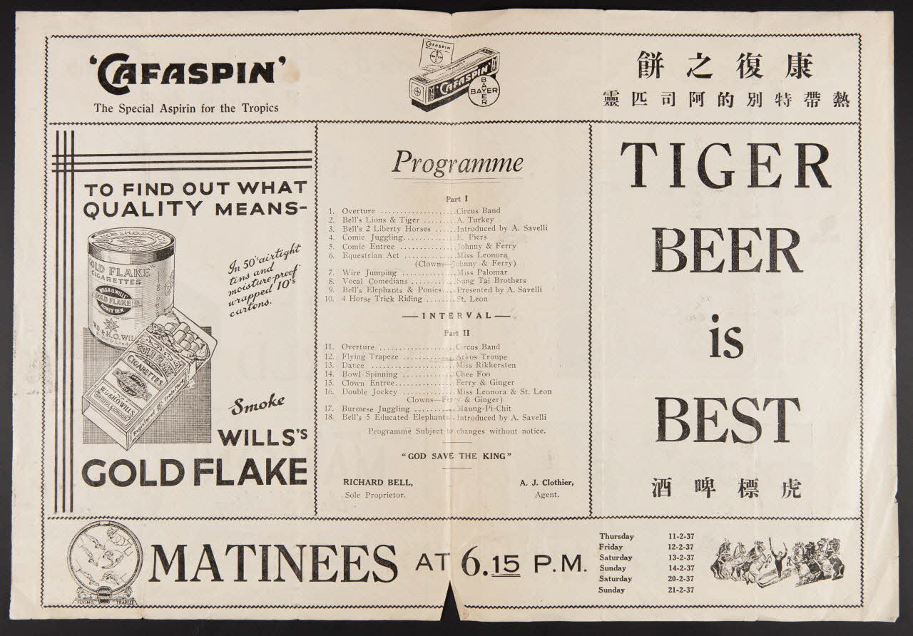 Reproduction industrielle noir et blanc / Double page ; Richard Bell en buste, Miss Palomar en pied, éléphantsDécor