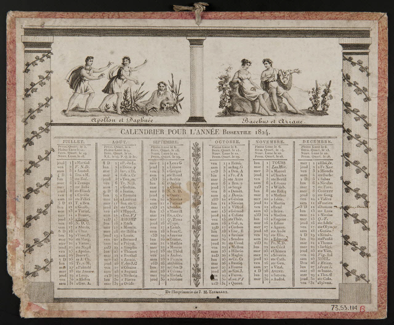 estampe, CALENDRIER POUR L'ANNEE Bissextile 1824.