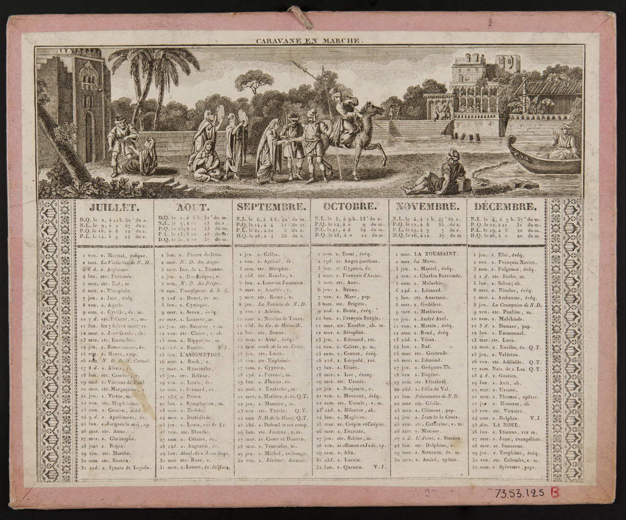 - Scène : caravane, dromadaire, fontaine, homme, femme, bâtiment