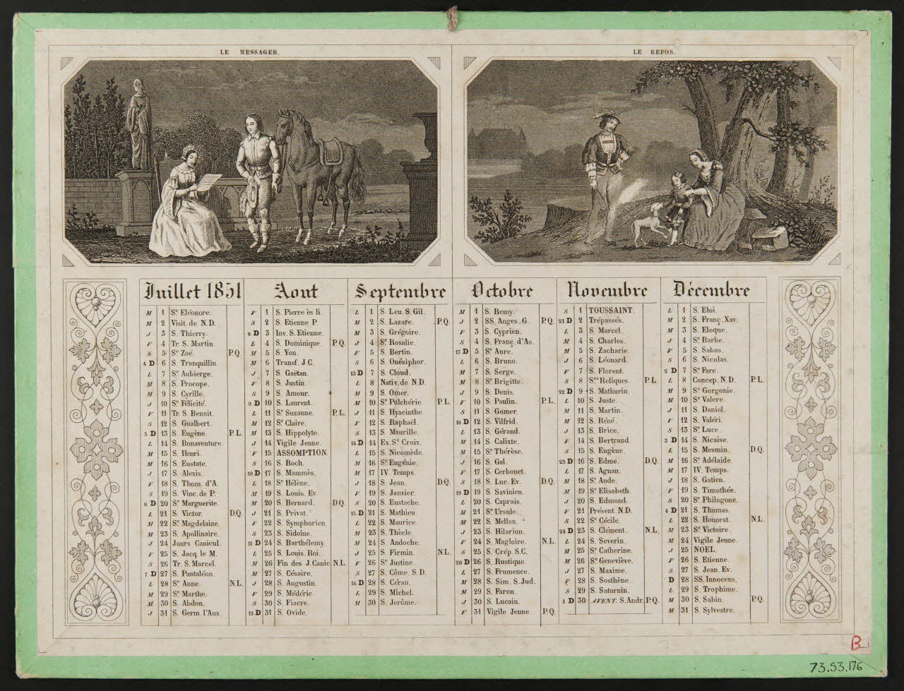 - Suite de scènes : homme, femme, cheval, homme, femme, cheval, message, lettre, famille
