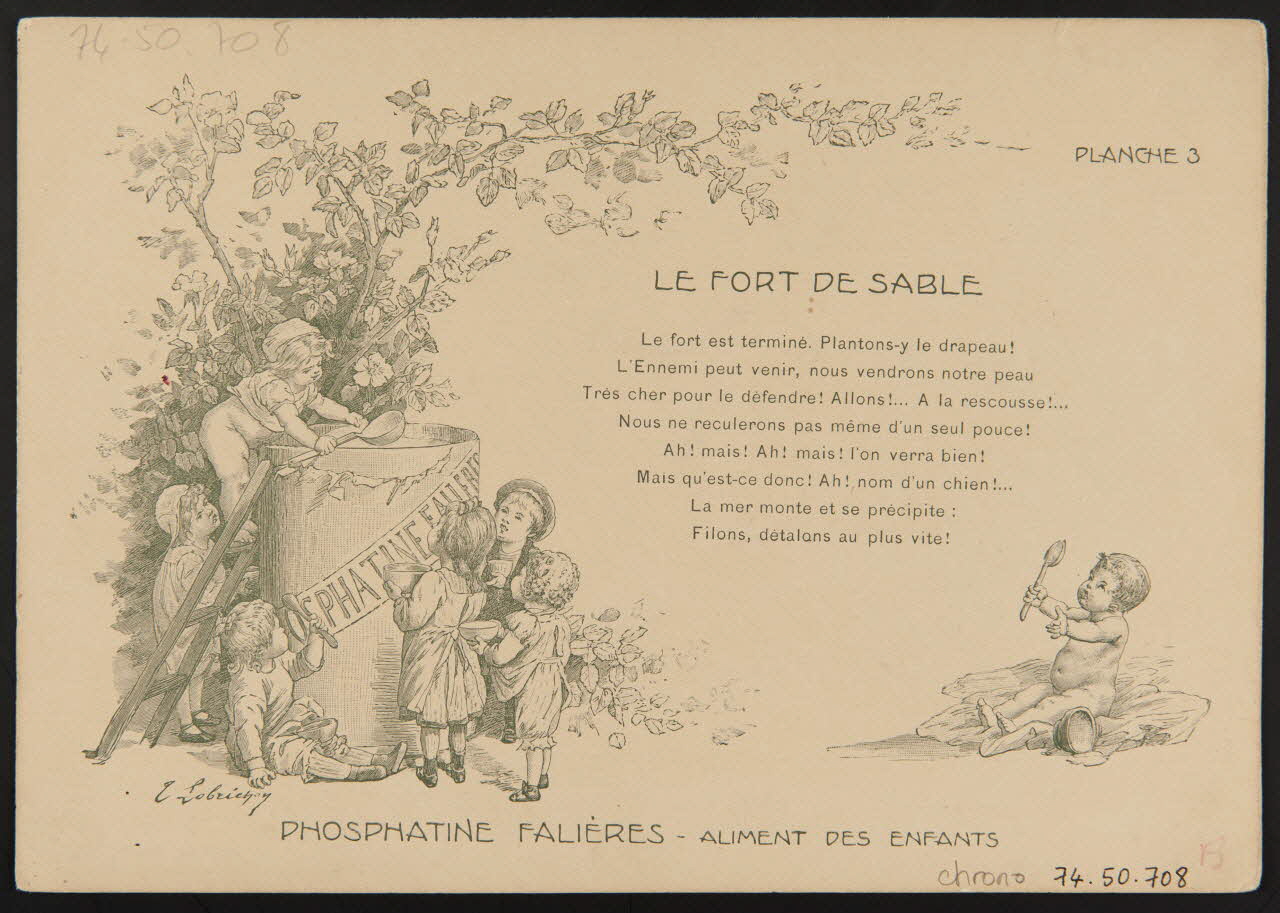 - Revers : scène : bébé : nu, cuillère, appel, enfant : garçon, fille, arbre, échelle, cuve : grande, louche