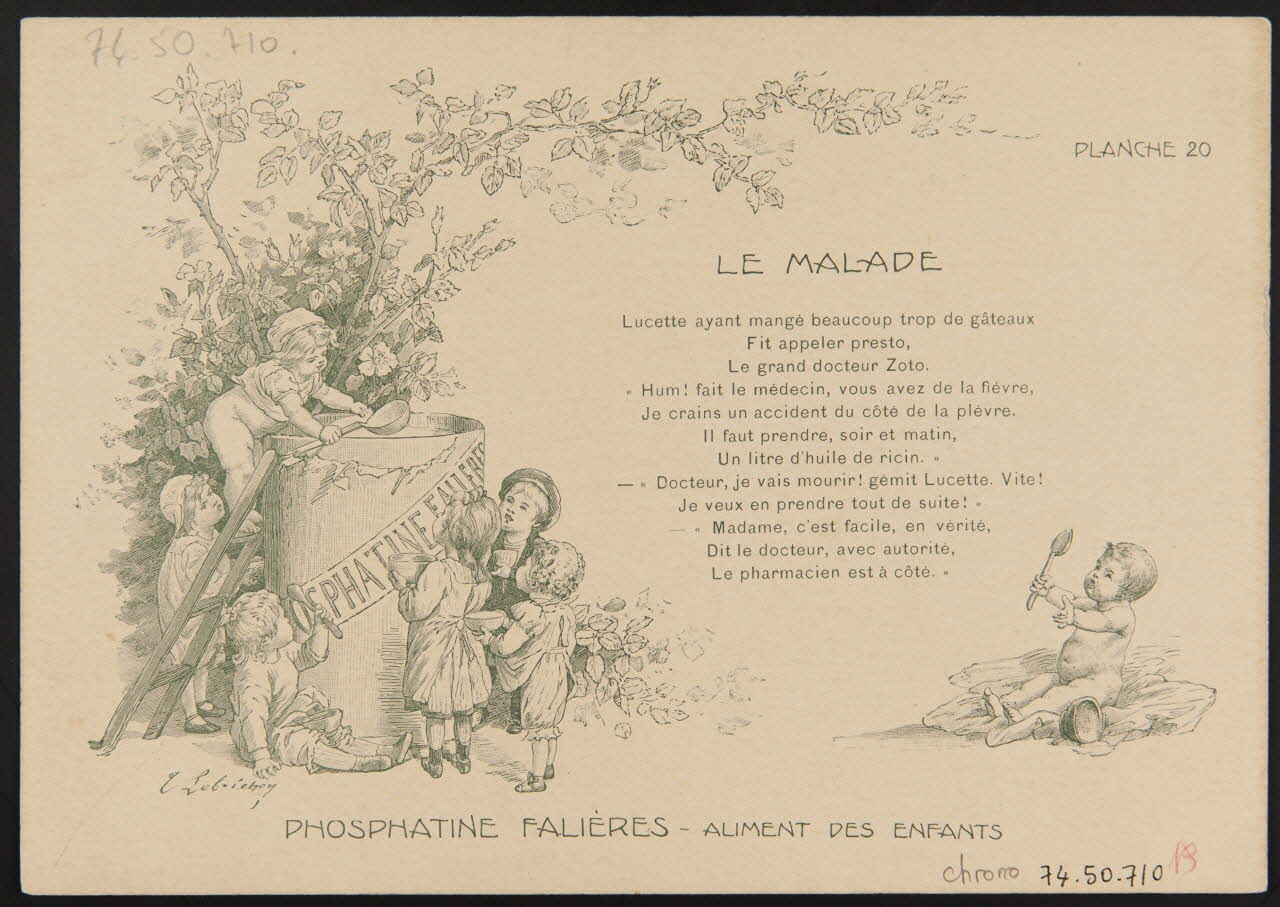 - Revers : scène : bébé : nu, cuillère, appel, enfant : garçon, fille, arbre, échelle, cuve : grande, louche
