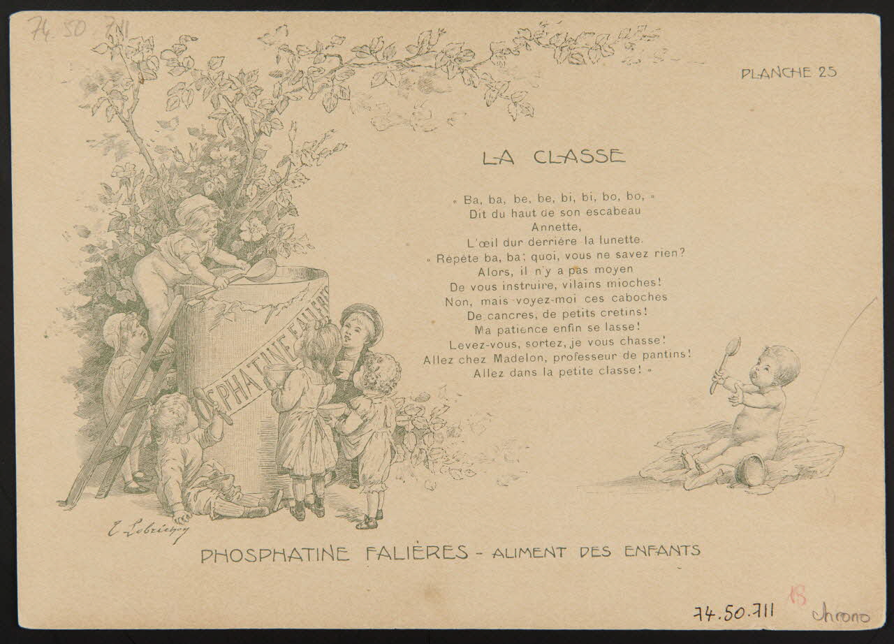 - Revers : scène : bébé : nu, cuillère, appel, enfant : garçon, fille, arbre, échelle, cuve : grande, louche