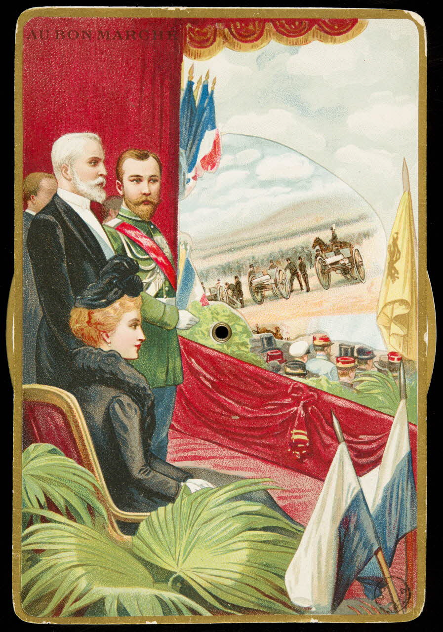 carte réclame, chromo, Tribune à un défilé militaire