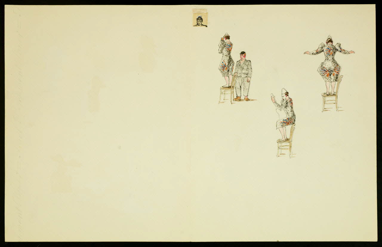 - Scènes : homme : clown, clownerie, debout : chaise