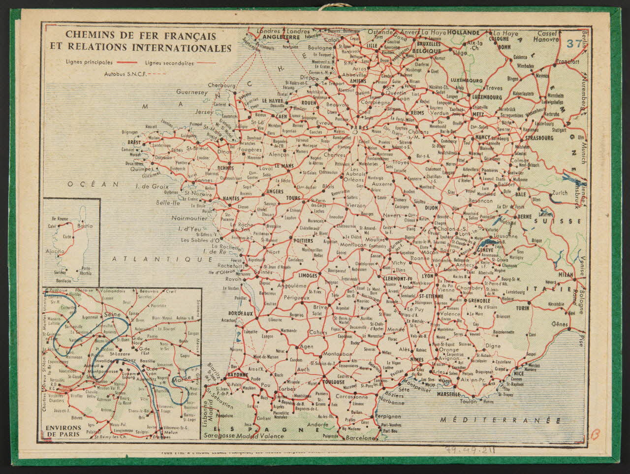- Revers : carte géographique : France, Paris, Corse