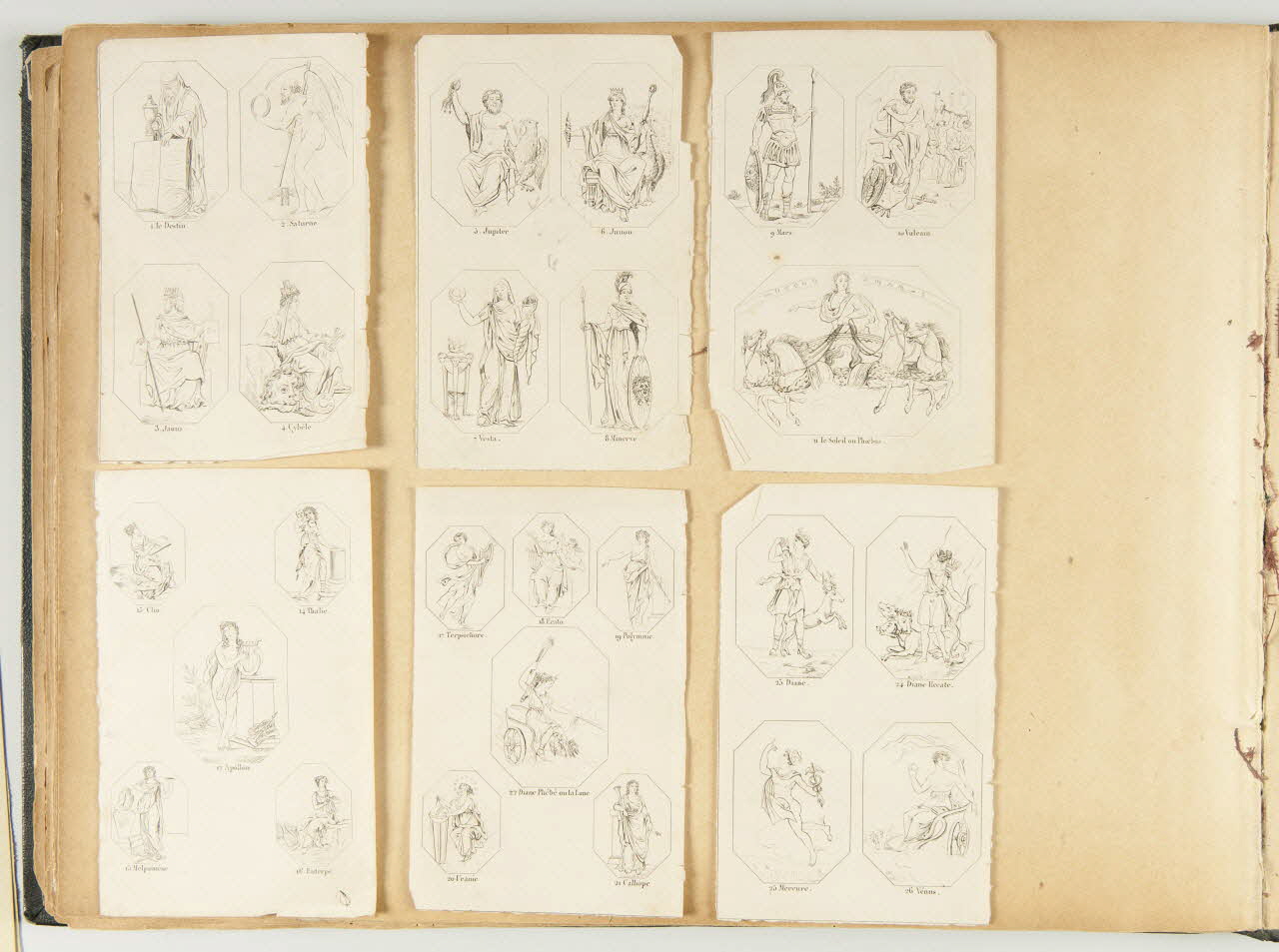 - Figures : Clio, Thalie, Apollon, Melpomene, Euterpe, dieu gréco-romain