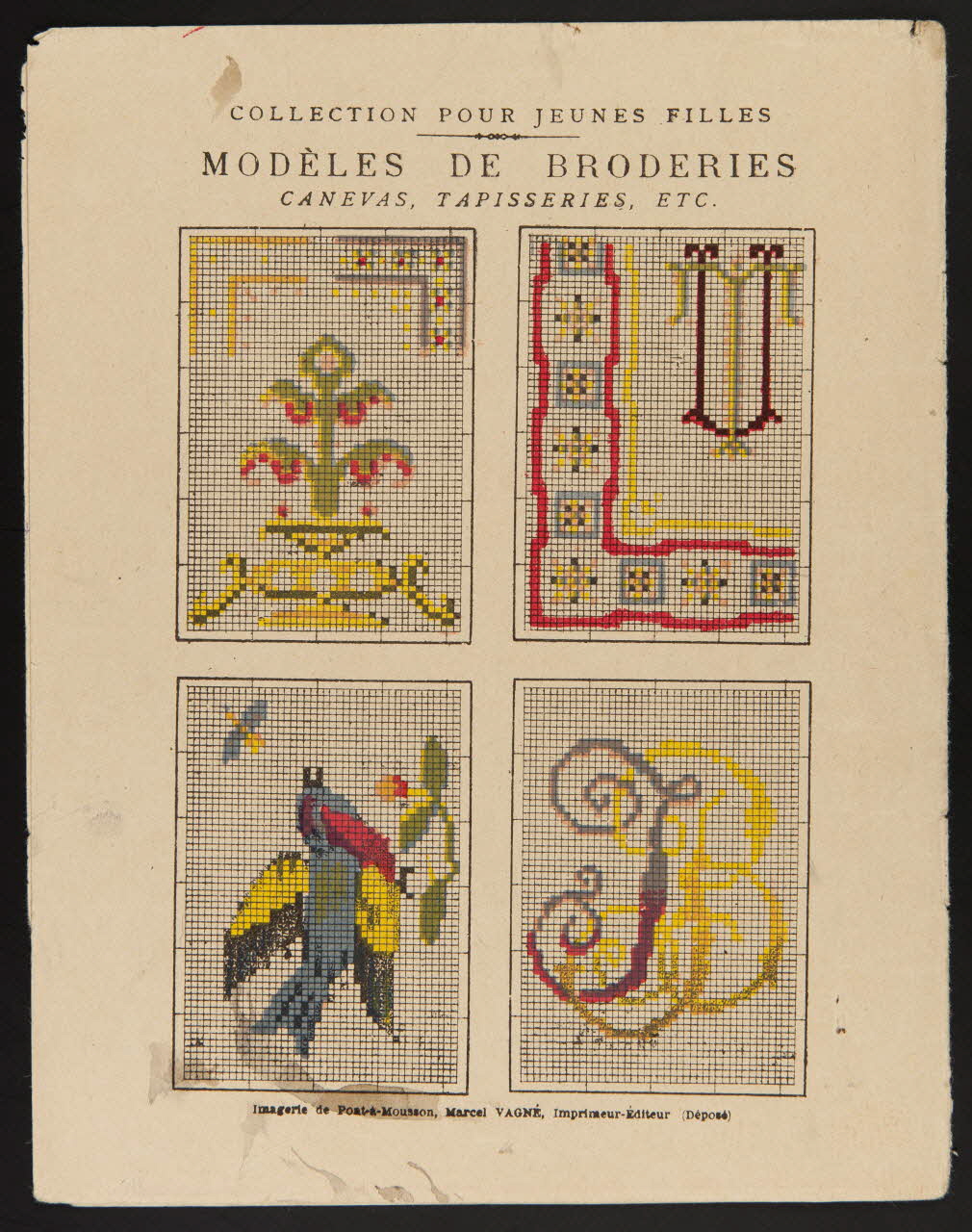 - Scène : femme: tricot, jeune fille : assise, banc, chapeau, poule, coq
