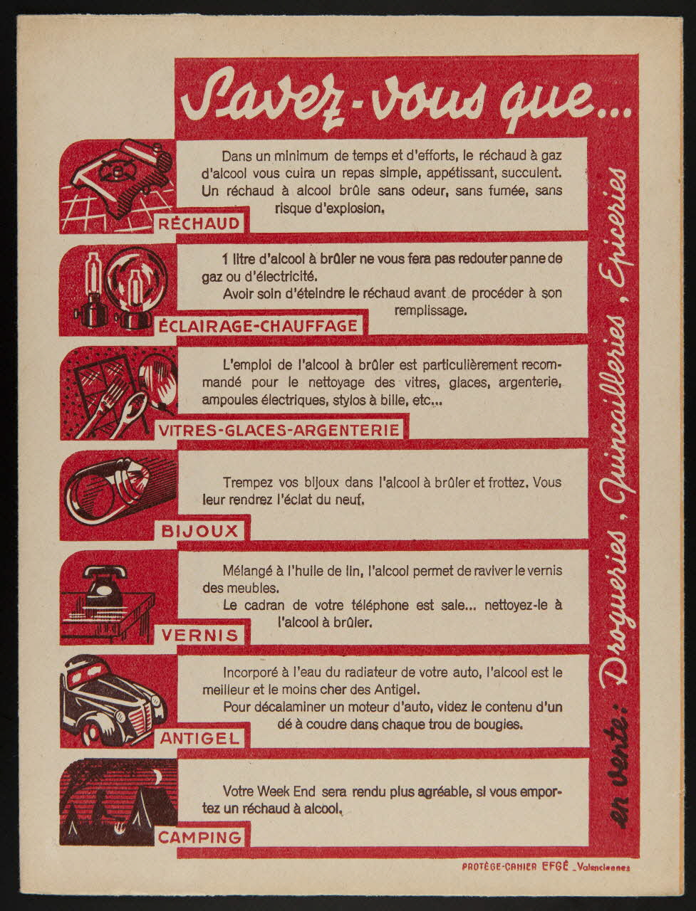 estampe, dans chaque foyer L'ALCOOL à BRULER est indispensable