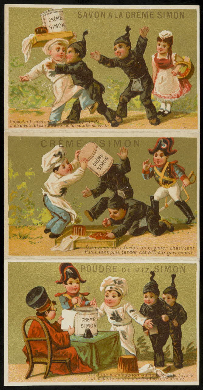 carte réclame, chromo, L'appelant : mon cousin, fallacieux prétexte, L'un d'eux lui saute au cou et lui souille sa veste