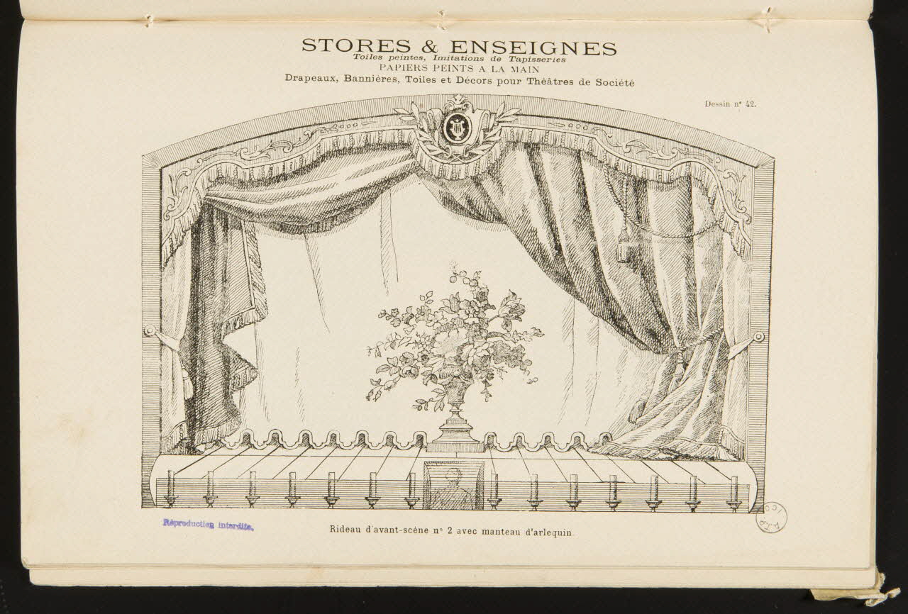 - Représentation d'objet : enseigne, Art nouveau, store, cigogne, oiseau, fleur, panier, fruit, paysage