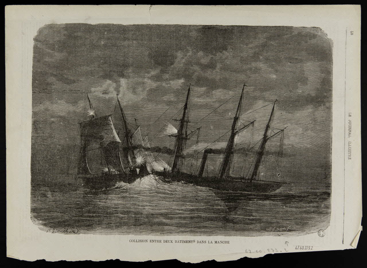 estampe, COLLISION ENTRE DEUX BATIMENTS DANS LA MANCHE