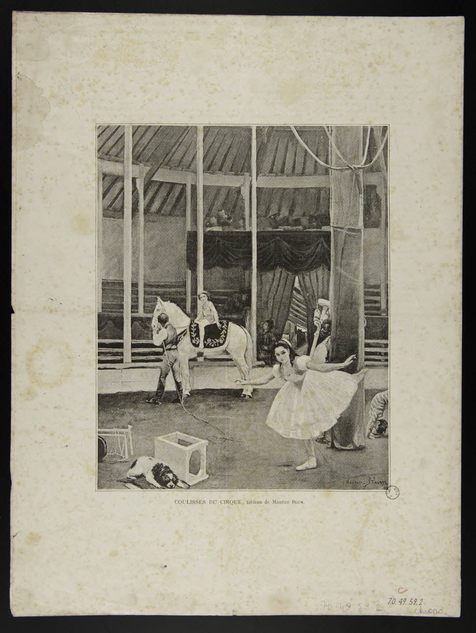 - Titre inscrit : COULISSES DU CIRQUE, tableau de Maurice BLUM.