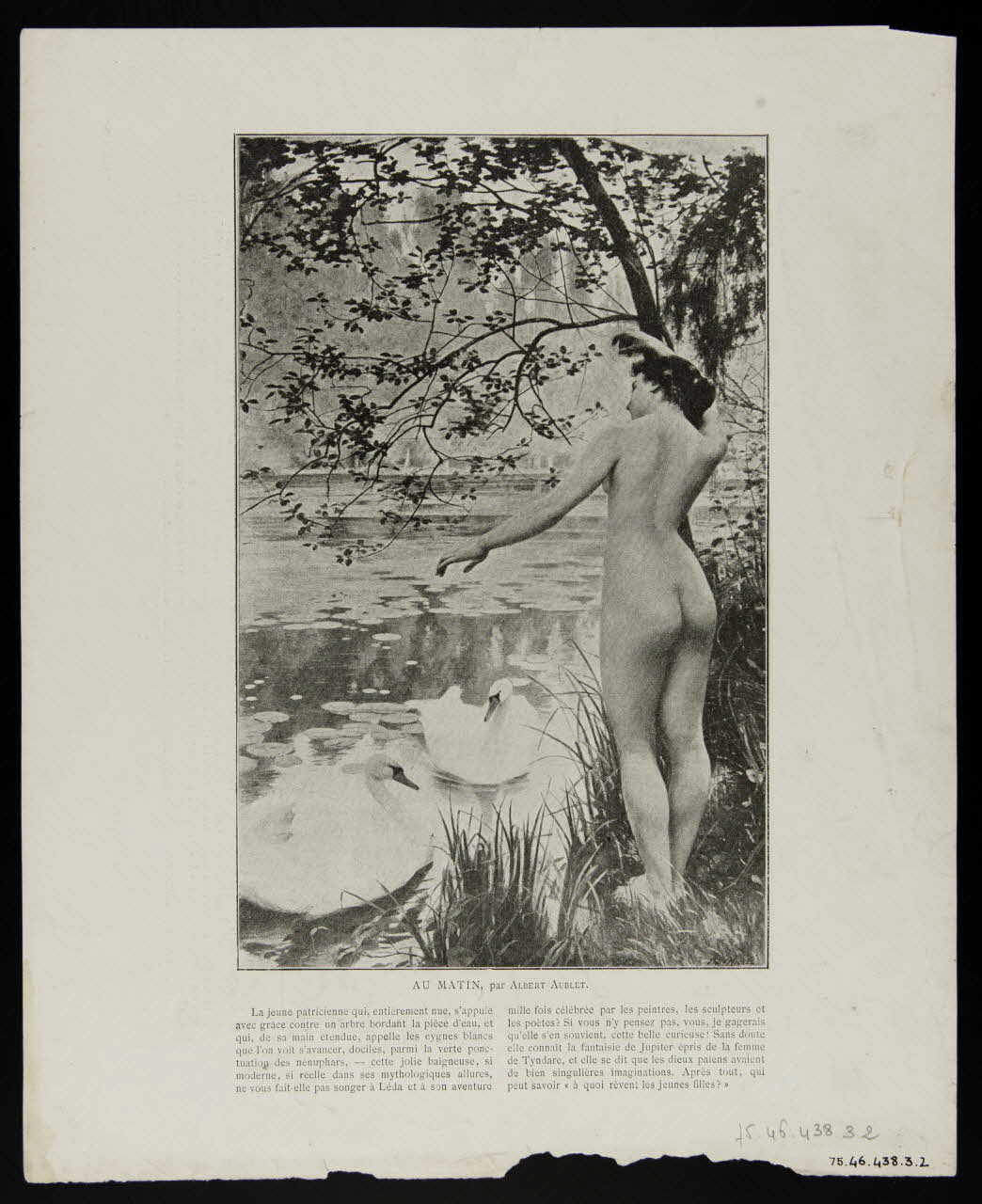 - Revers : scène : jeune fille, en pied, de dos, nudité, lac, cygne