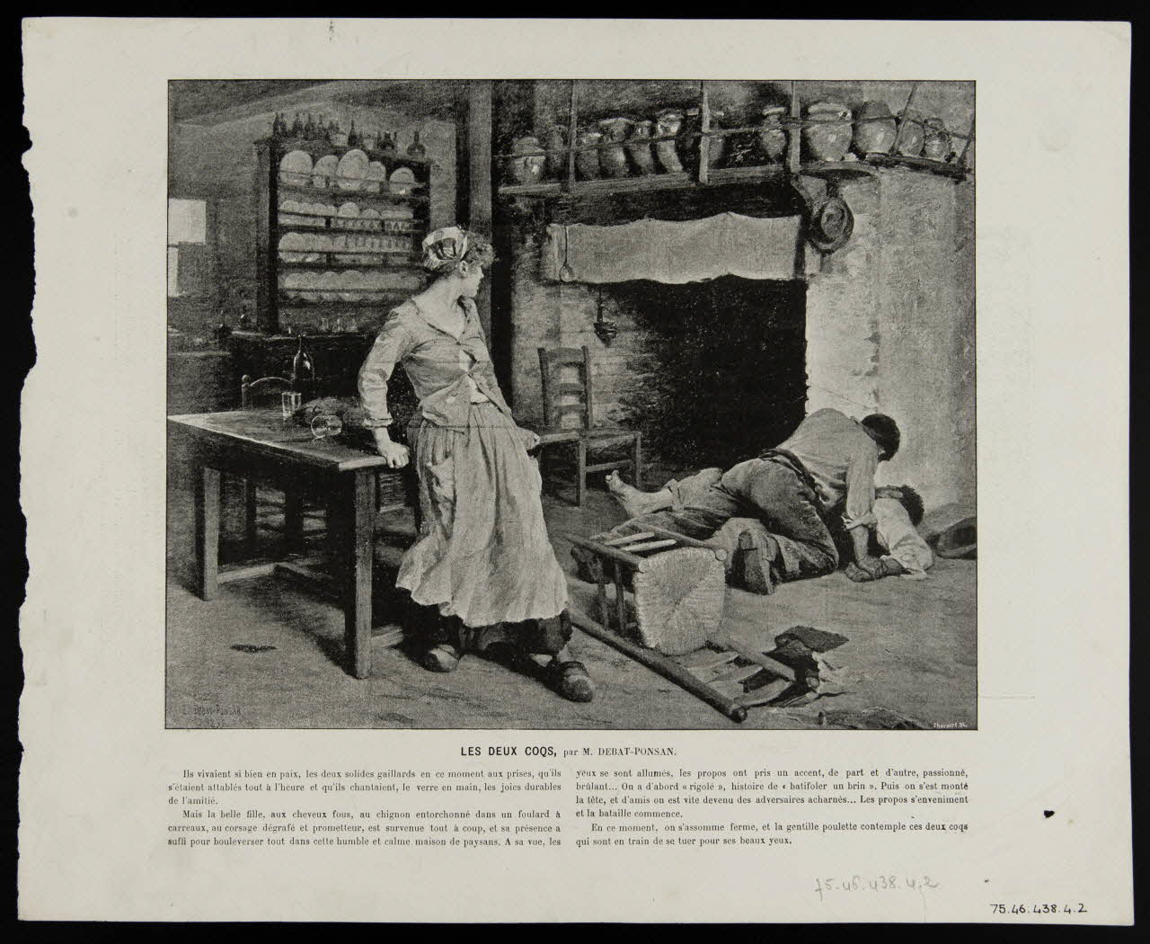 estampe, JEUNESSE, par FRANC LAMY, LES DEUX COQS, par M. DEBAT-PONSAN.